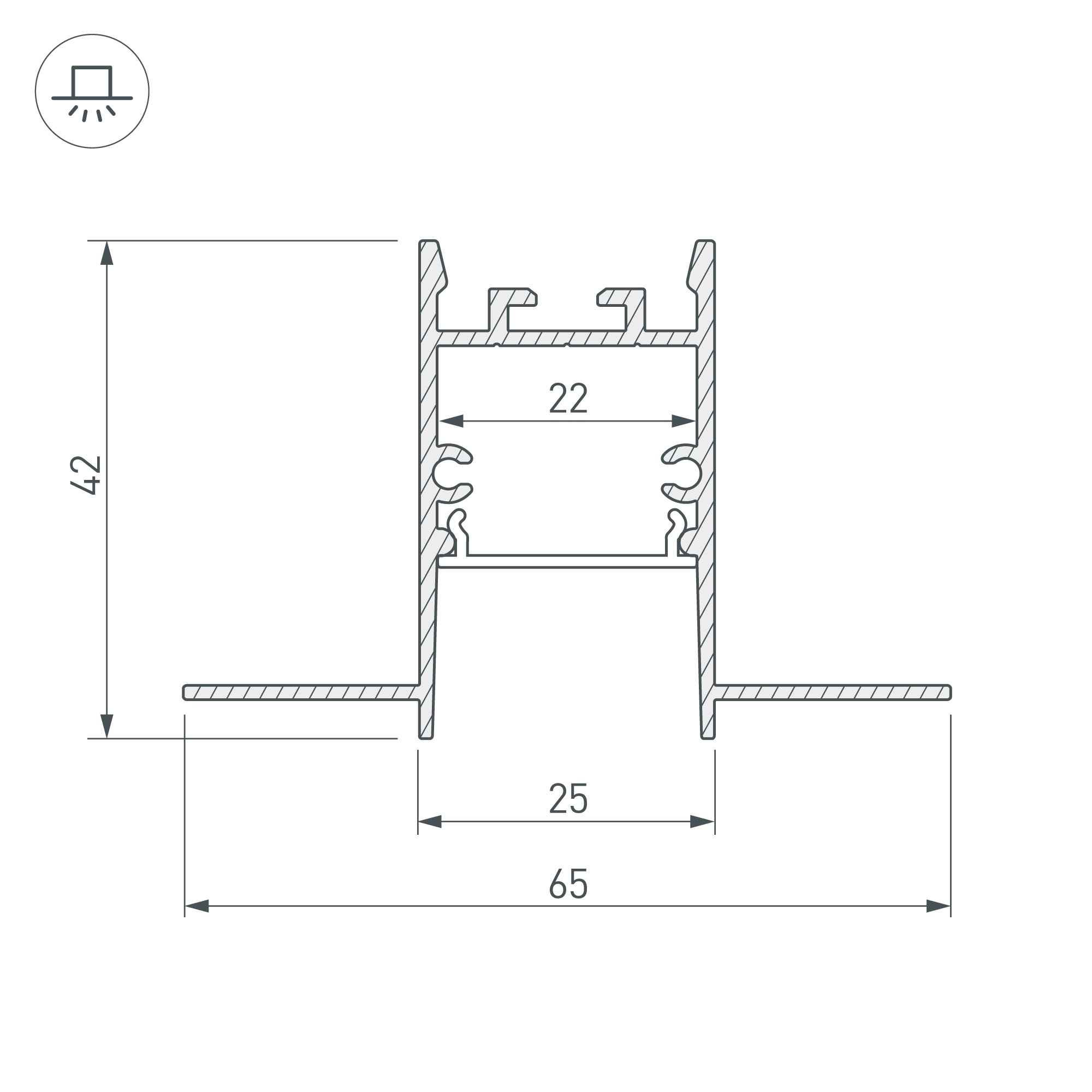 Встраиваемый профиль со скрытым фланцем под строительную отделку из анодированного алюминия для основной и контурной подсветки помещений. Экран утоплен в плоскости профиля, что позволяет скрыть источник света от прямого контакта с глазами. Габаритные размеры профиля составляют 2000 мм в длину, 65 мм в ширину и 42 мм в высоту, паз для установки 25 мм. Площадка для установки светодиодных лент позволяет использовать ленту шириной до 22 мм и мощностью до 46,7 Вт/м. Это обеспечивает гибкость в выборе светодиодных лент и создает потрясающие световые решения. Экраны, заглушки и другие аксессуары не включены в комплект и приобретаются отдельно. Цена указана за 1 метр профиля. Отличное решение для создания современных световых проектов.