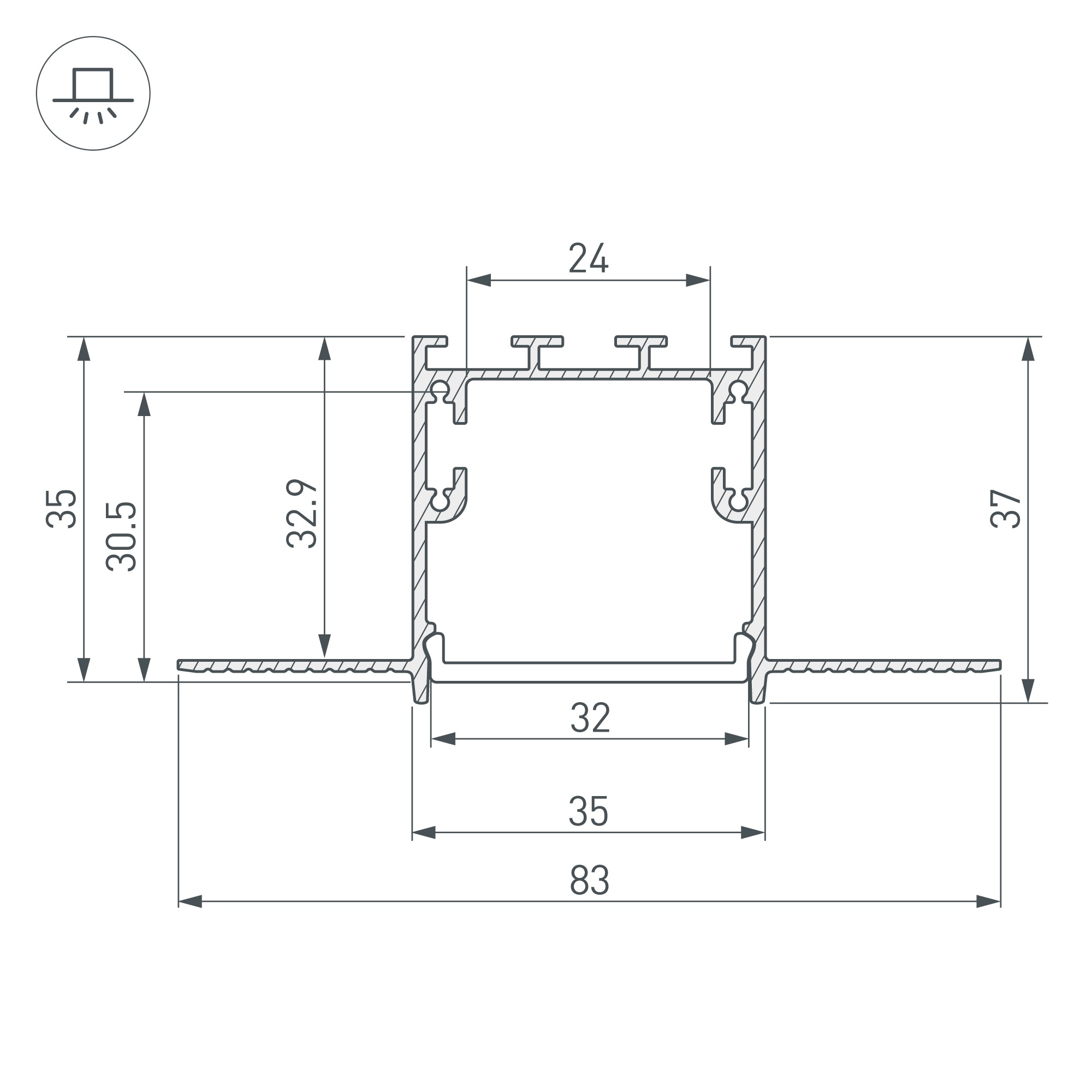 Характеристики - Профиль с экраном SL-LINIA32-FANTOM-2500 ANOD+FROST (Arlight, Алюминий)