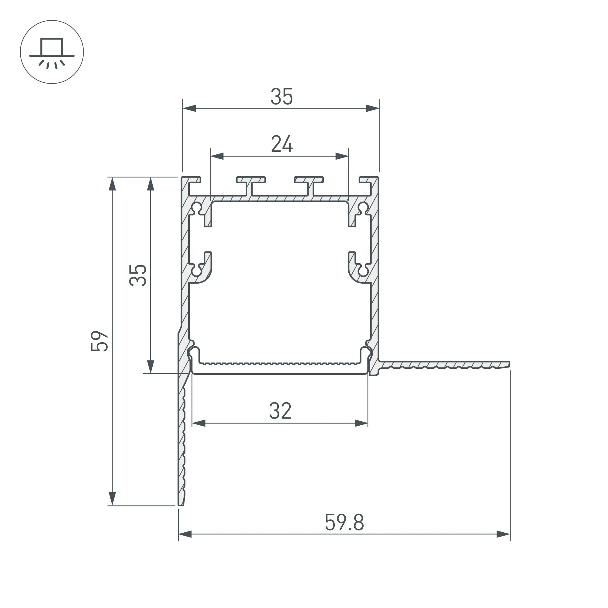 Встраиваемый профиль из анодированного алюминия со скрытым фланцем под строительную отделку устанавливается в потолки и потолочные ниши из гипсокартона для контурной подсветки помещений. Габаритные размеры профиля составляют 2000 мм в длину, 59,8 мм в ширину и 59 мм в высоту. Площадка для установки светодиодных лент позволяет использовать ленту шириной до 24 мм и мощностью до 52,5 Вт/м. Это обеспечивает гибкость в выборе светодиодных лент и создает потрясающие световые решения. Экраны, заглушки и другие аксессуары не включены в комплект и приобретаются отдельно. Цена указана за 1 метр профиля. Отличное решение для создания современных световых проектов.
