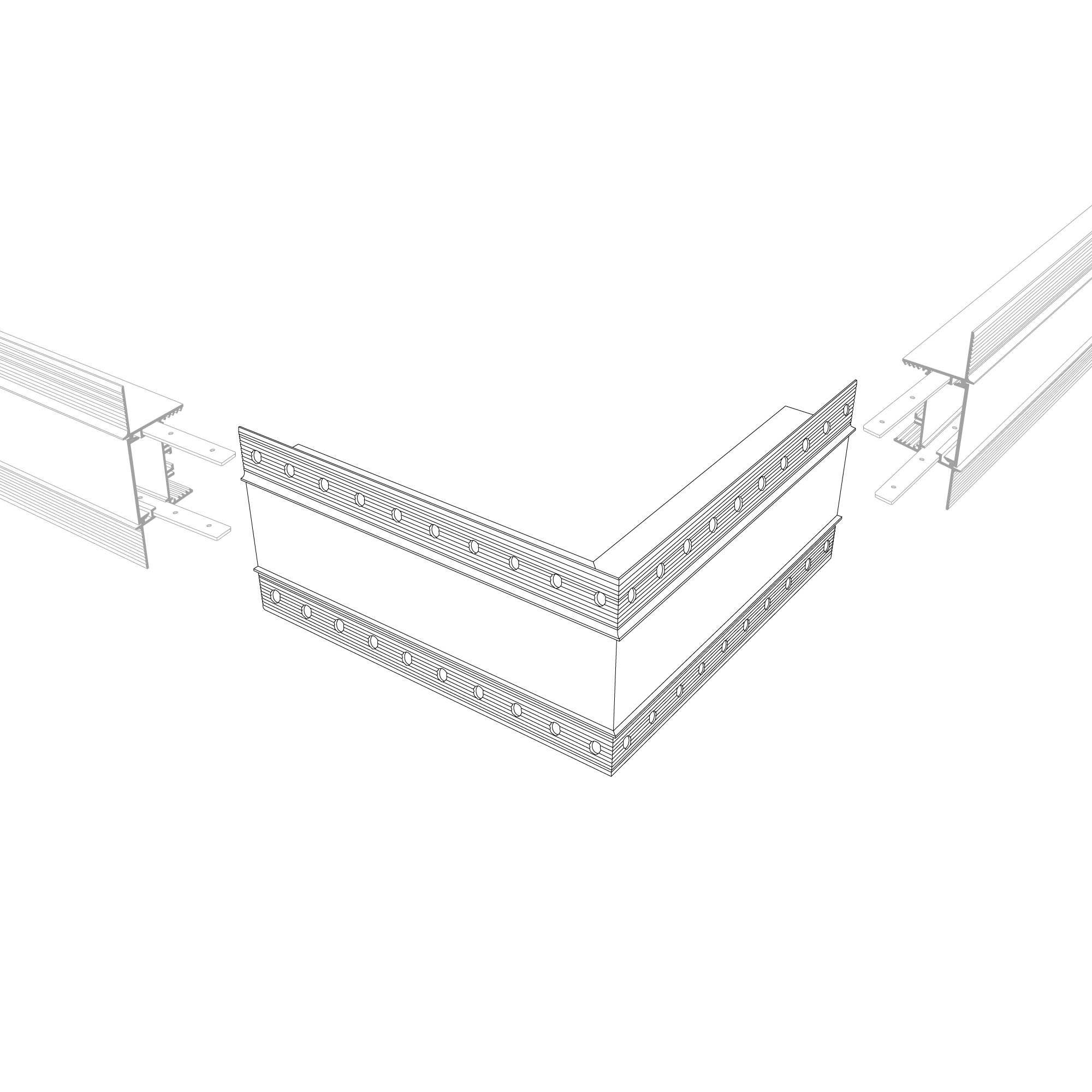 Внешний прямой угол в сборе со скрытым фланцем под строительную отделку для соединения двух профилей SL-LINIA45-FANTOM под прямым углом 90° в разных плоскостях в комплекте с матовым экраном и соединителями. Экран образует линию по внешней стороне угла. Применятся при изготовлении светильников сложной геометрии. Длина внешней стороны угла 200мм. Цена за комплект.