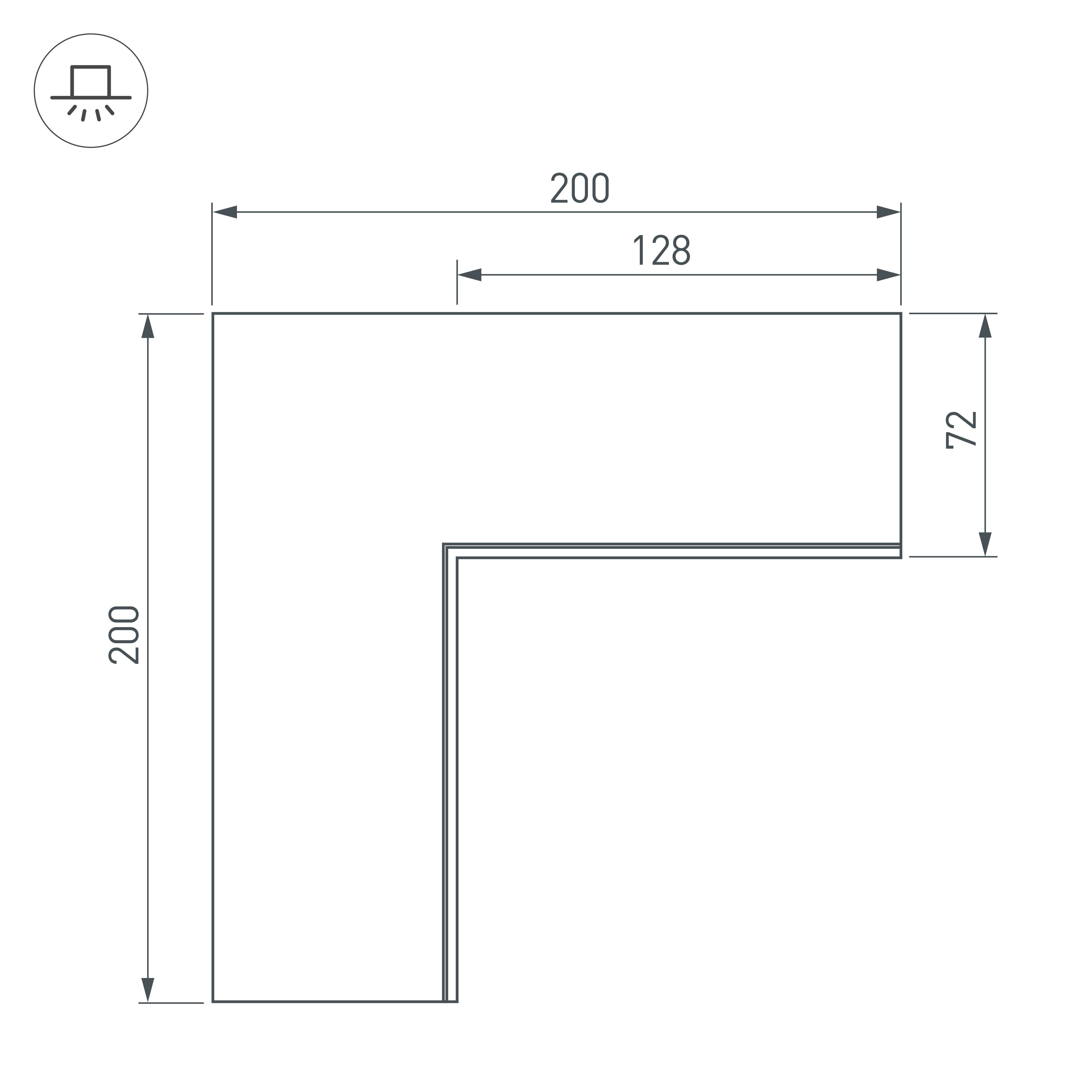 Внутренний прямой угол в сборе со скрытым фланцем под строительную отделку для соединения двух профилей SL-LINIA55-FANTOM под прямым углом 90° в разных плоскостях в комплекте с матовым экраном и соединителями. Экран образует линию внутри угла. Применятся при изготовлении светильников сложной геометрии. Длина внешней стороны угла 200мм. Цена за комплект.