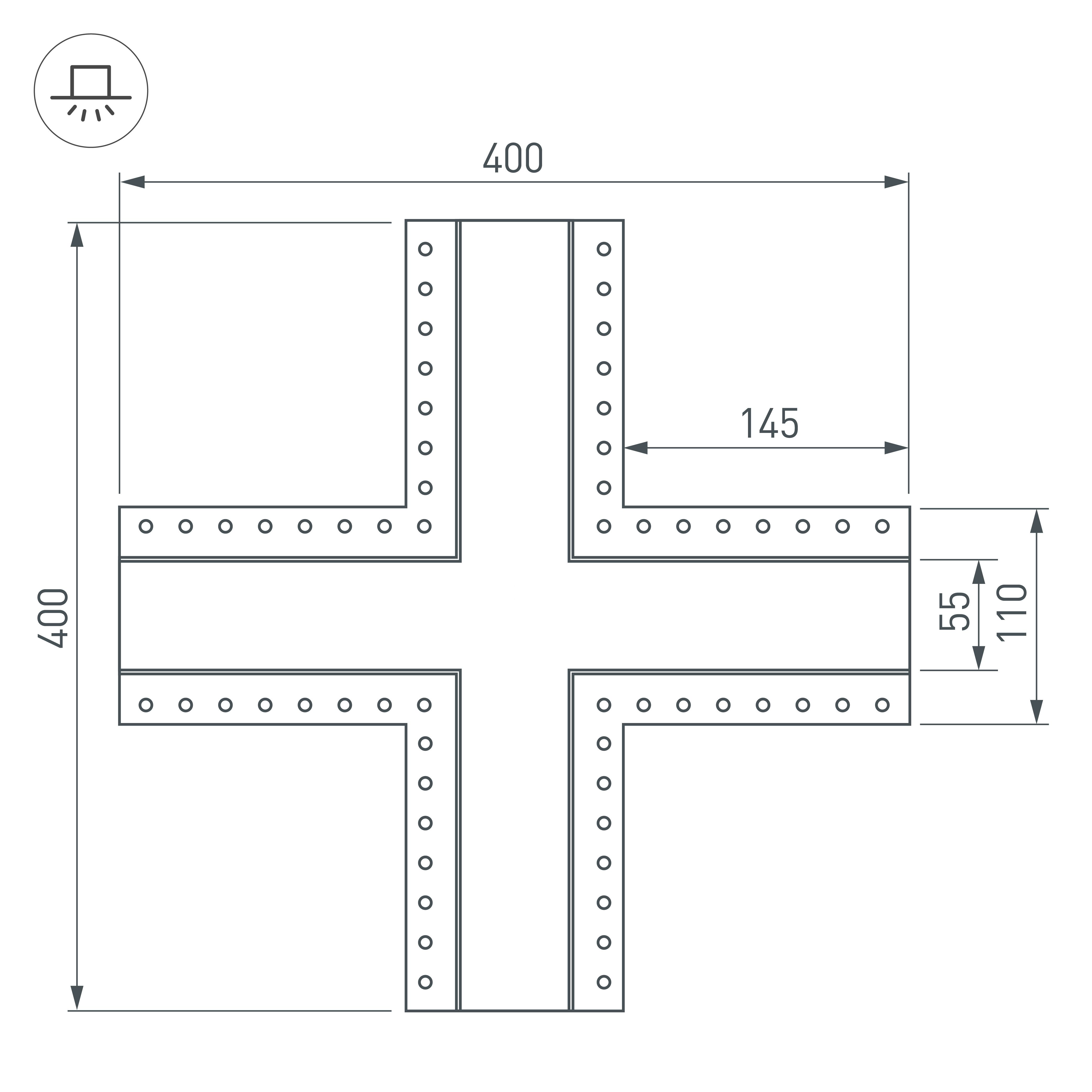Крестовой угол в сборе для соединения четырех профилей SL-LINIA55-FANTOM под прямыми углами 90° в одной плоскости в комплекте с матовым экраном, соединителями и винтами. Экран образует Х-образную фигуру на плоскости. Применятся при изготовлении светильников сложной геометрии. Длина крестовины 400 мм. Цена за комплект.
