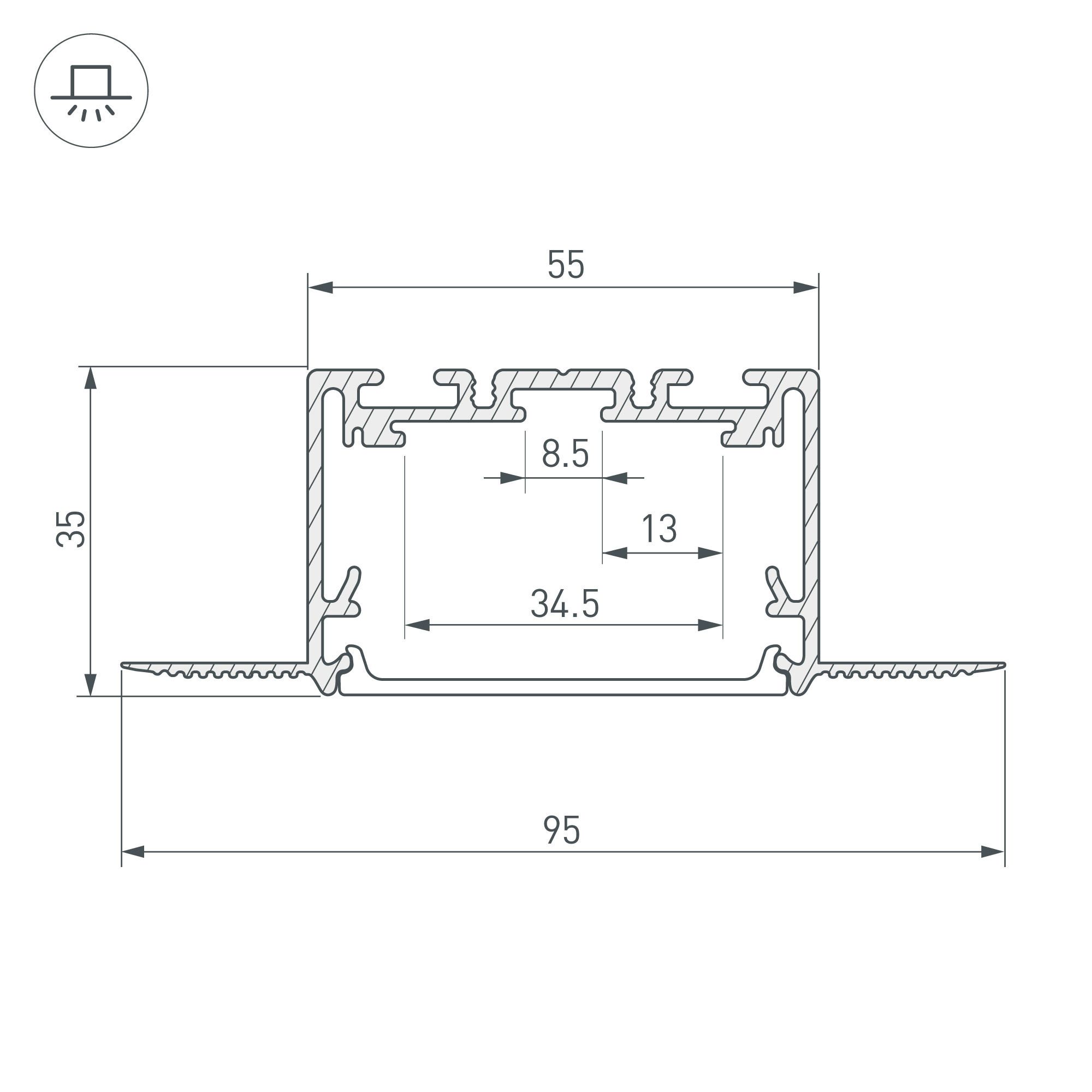 Встраиваемый профиль со скрытым фланцем под строительную отделку из анодированного алюминия для основной и контурной подсветки помещений. Используется с гибким экраном SL-SEAMLESS. Габаритные размеры профиля составляют 2500 мм в длину, 95 мм в ширину и 35 мм в высоту, паз для установки 55 мм. Площадка для установки светодиодных лент позволяет использовать ленту шириной до 34,5 мм и мощностью до 59,1 Вт/м. Это обеспечивает гибкость в выборе светодиодных лент и создает потрясающие световые решения. Экраны, заглушки и другие аксессуары не включены в комплект и приобретаются отдельно. Цена указана за 2,5 метра профиля. Отличное решение для создания современных световых проектов.