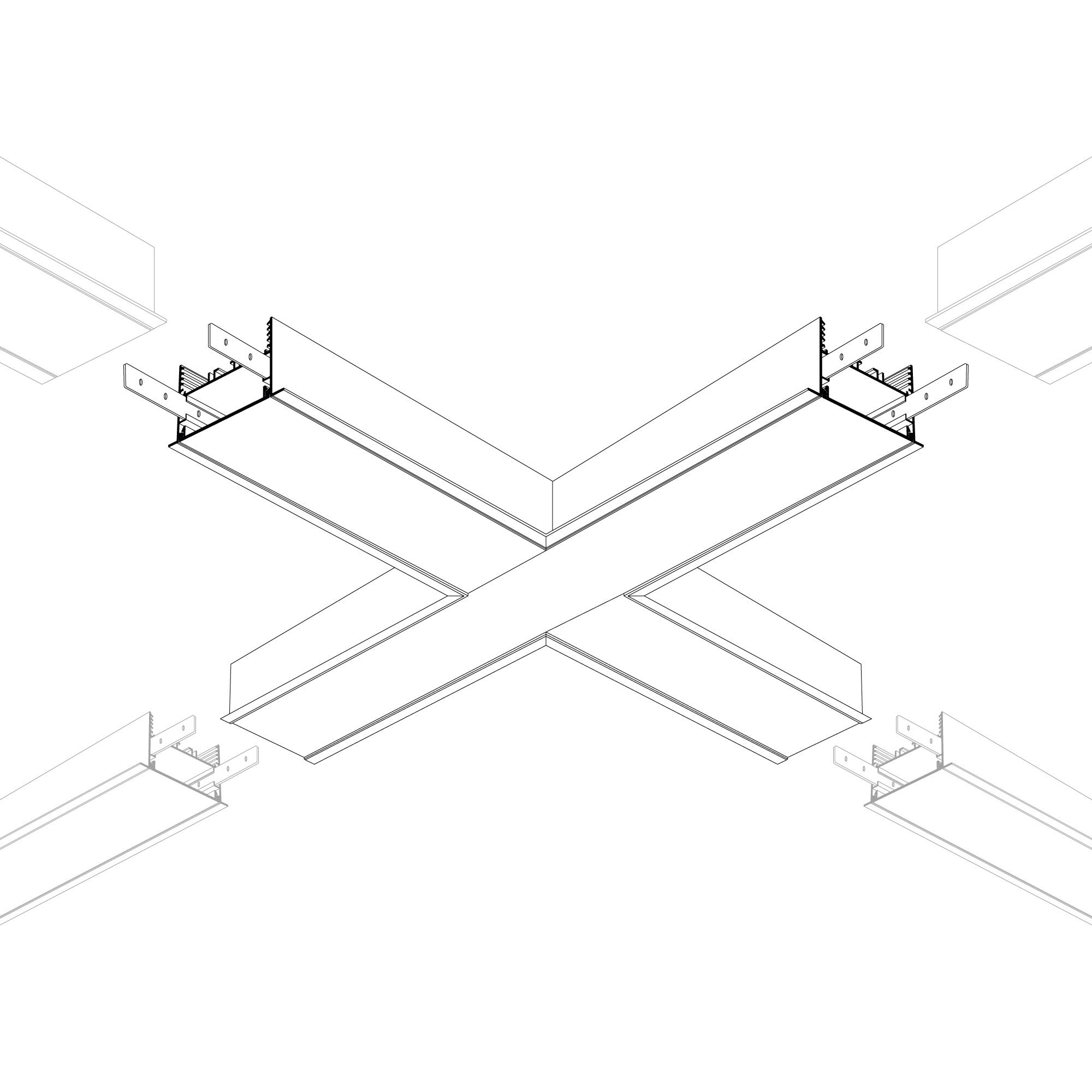Крестовой угол в сборе для соединения четырех профилей SL-LINIA65-F под прямыми углами 90° в одной плоскости в комплекте с матовым экраном, соединителями и винтами. Экран образует Х-образную фигуру на плоскости. Применятся при изготовлении светильников сложной геометрии. Длина крестовины 400 мм. Цена за комплект.