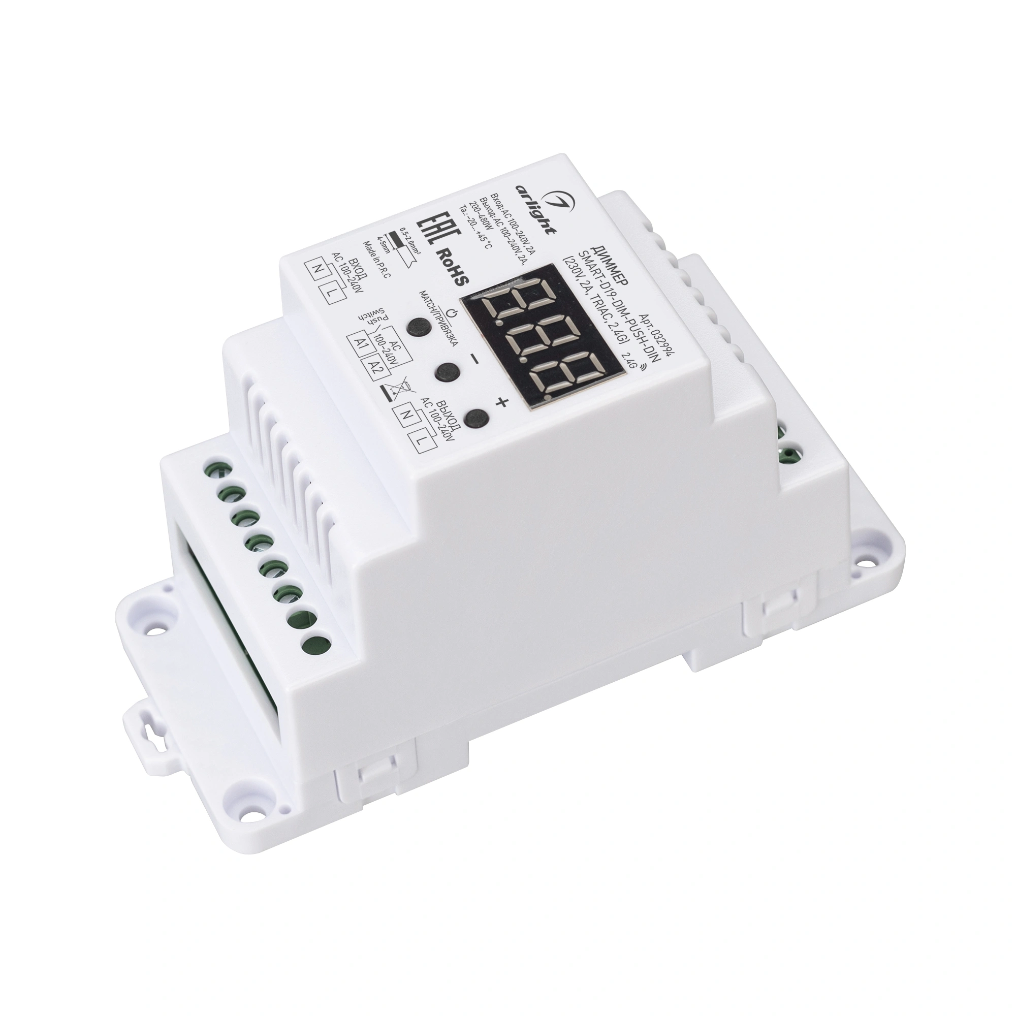 Характеристики - Диммер SMART-D19-DIM-PUSH-DIN (230V, 2A, TRIAC, 2.4G) (Arlight, IP20 Пластик, 5 лет)