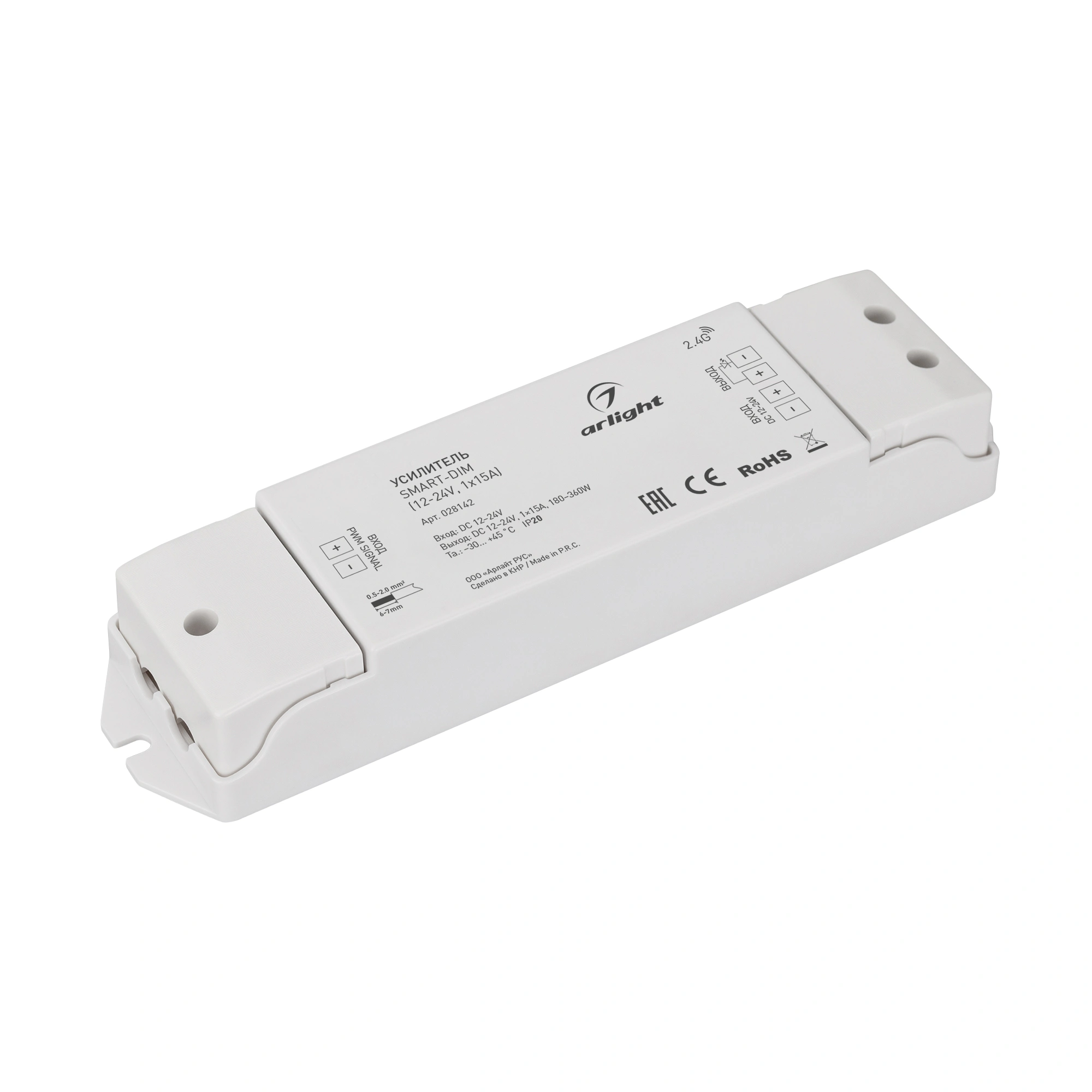 Характеристики - Усилитель SMART-DIM (12-24V, 1x15A) (Arlight, IP20 Пластик, 5 лет)