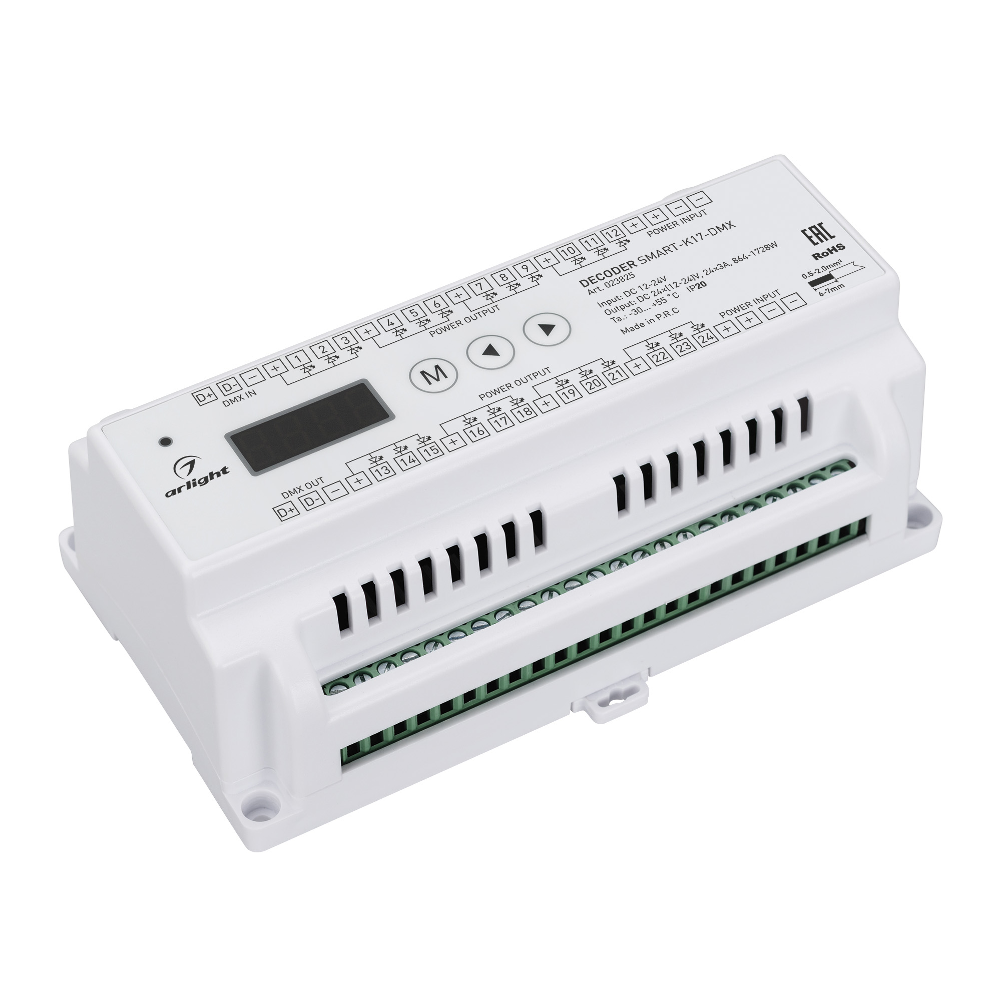 Характеристики - Декодер SMART-K17-DMX (12-24V, 24x3A) (Arlight, IP20 Пластик, 5 лет)