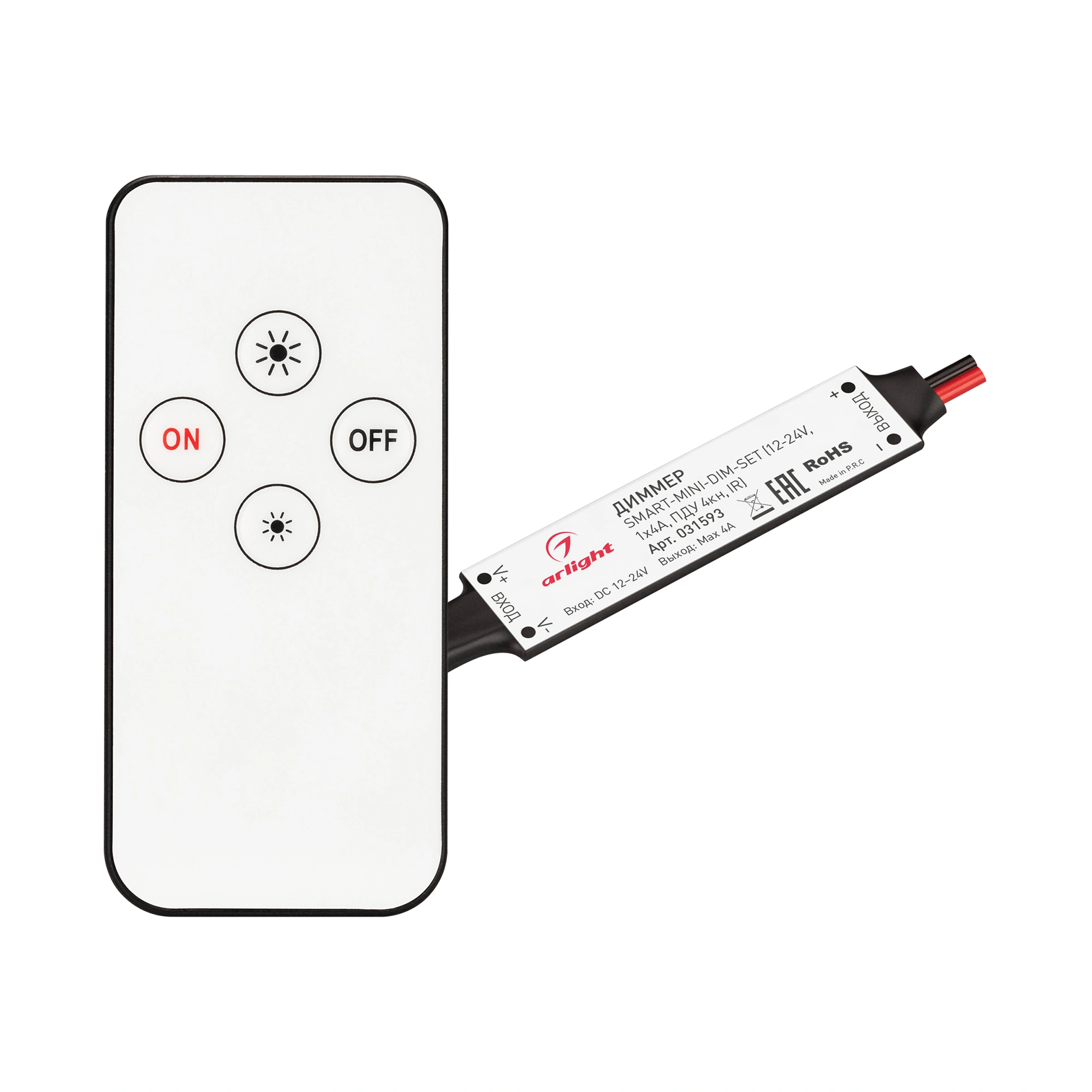 Характеристики - Диммер SMART-MINI-DIM-SET (12-24V, 1x4A, ПДУ 4кн, IR) (Arlight, IP20 Пластик, 5 лет)