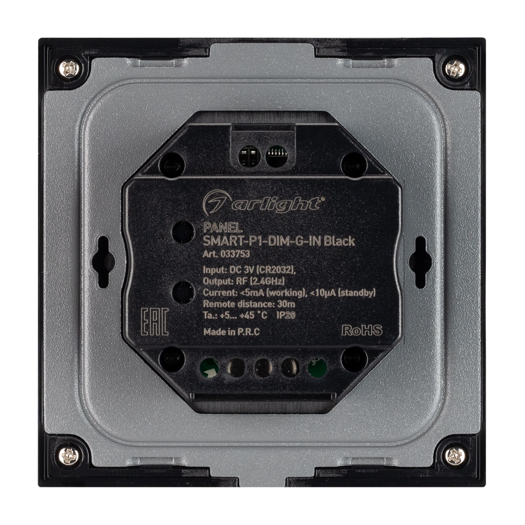 Характеристики - Панель SMART-P1-DIM-G-IN Black (3V, Rotary, 2.4G) (Arlight, IP20 Пластик, 5 лет)