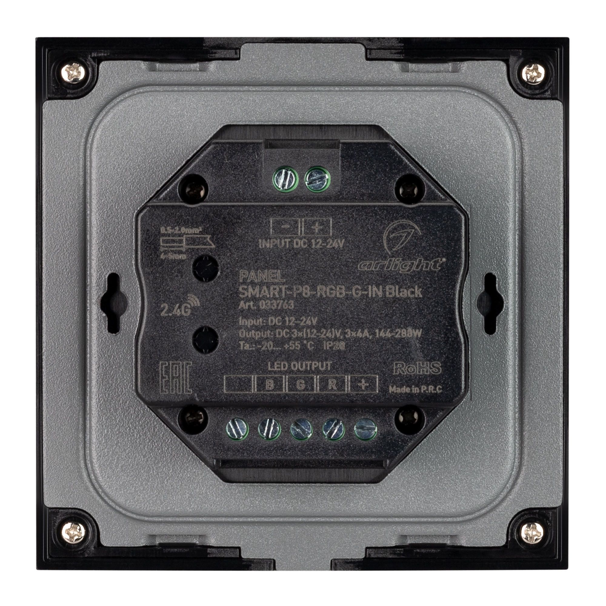 Характеристики - Панель SMART-P8-RGB-G-IN Black (12-24V, 3x4A, Rotary, 2.4G) (Arlight, IP20 Пластик, 5 лет)