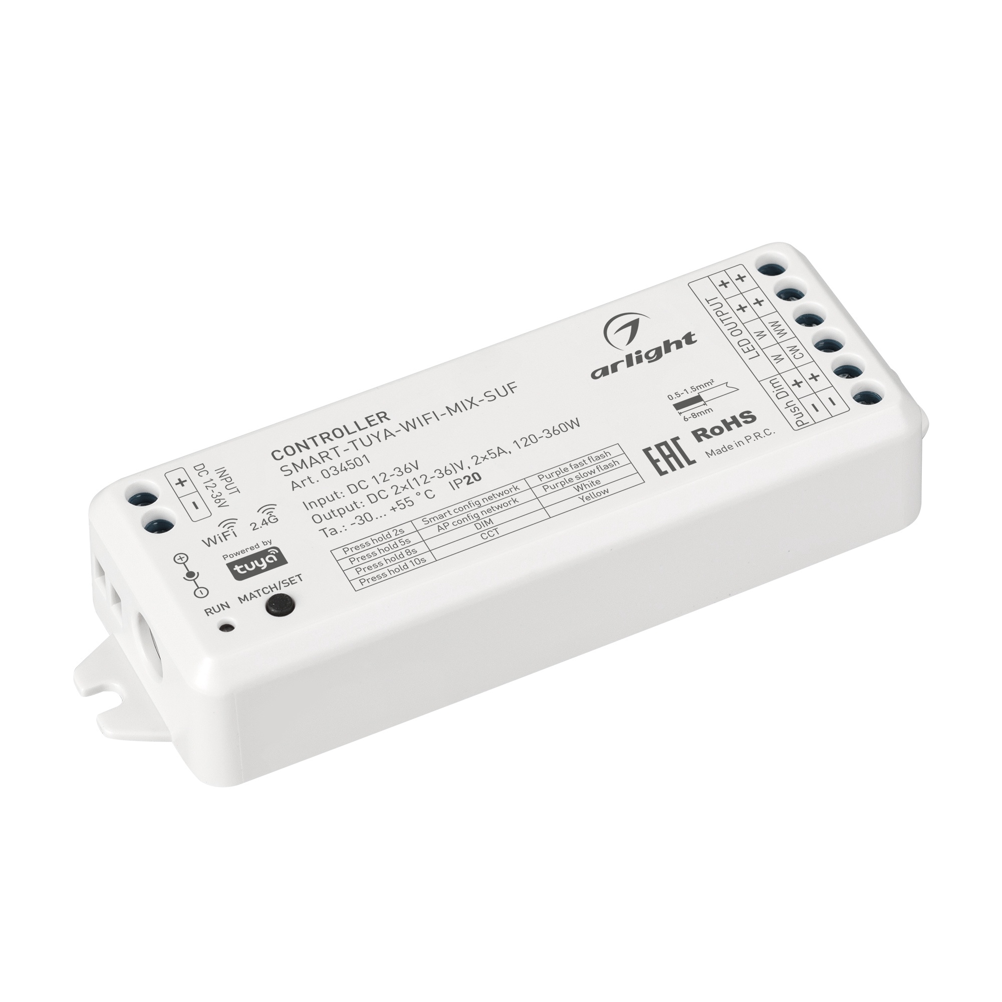 Характеристики - Контроллер SMART-TUYA-WIFI-MIX-SUF (12-36V, 2x5A, 2.4G) (Arlight, IP20 Пластик, 5 лет)
