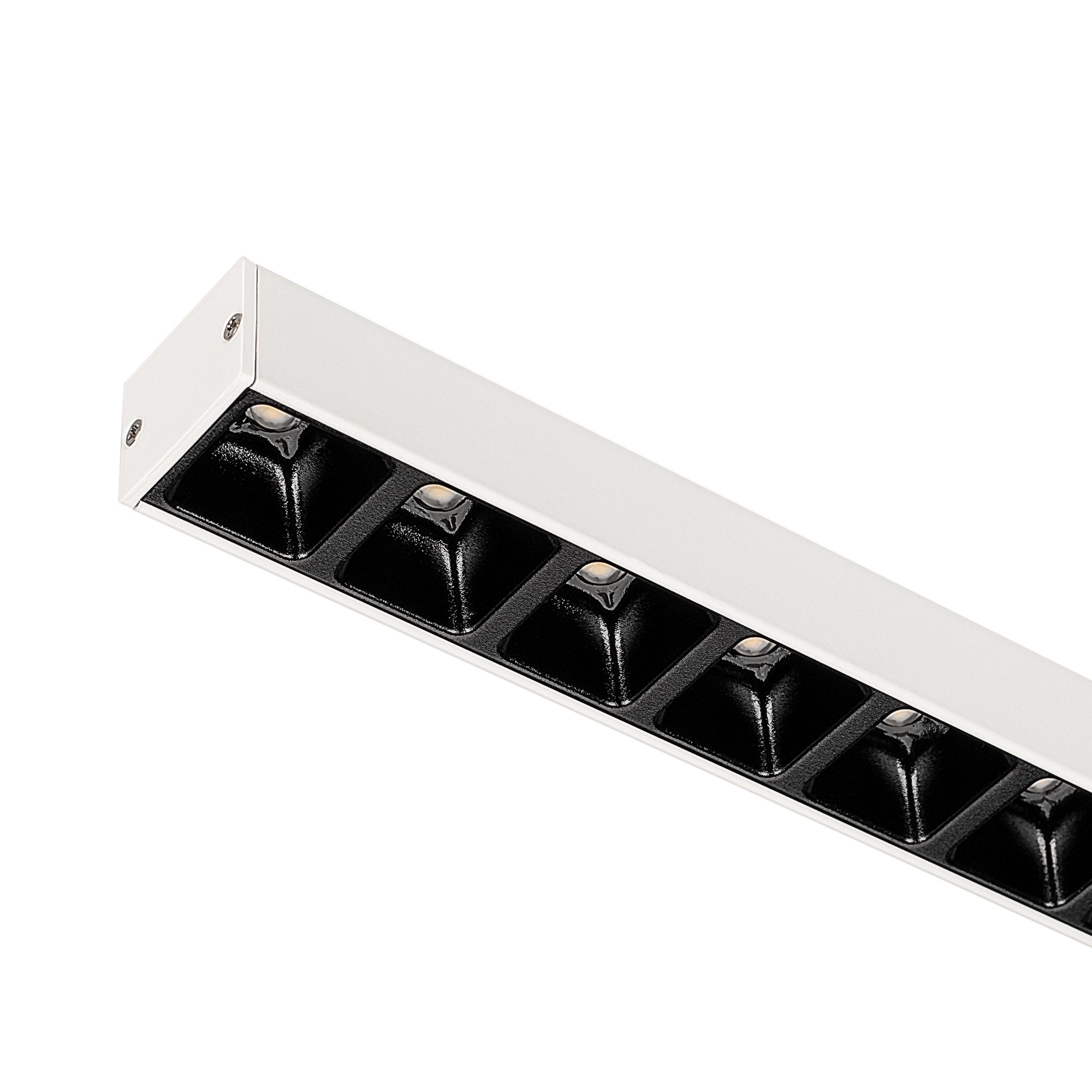 Линейный светодиодный светильник SNAP-STARLINE-LASER-S1200-26W Warm3000 (WH-BK, 80 deg, 48V) для направляющих потолка «Армстронг» шириной 15 и 24 мм это удобное и эффективное решение освещения. Поворотное крепление светильника фиксируется на направляющей и совместимо с профилем разной ширины. Лаконичный корпус прямоугольного сечения из алюминия идеально подходит и для накладного монтажа с помощью держателя 034271. Мощность светильника 28 Вт, световой поток 2060 лм, световая эффективность 74 лм/Вт, цвет свечения теплый белый (3000 K). Узкий угол 80 градусов позволяет использовать светильник для акцентного освещения. Из светильников можно составлять линейные или геометрические фигуры на потолке, что позволяет воплотить любые идеи светового дизайна. Светильник с напряжением питания 48 В и степенью защиты IP40 подходит для создания комфортного освещения в офисах, магазинах, жилых и коммерческих помещениях. Драйвер для подключения поставляется отдельно.