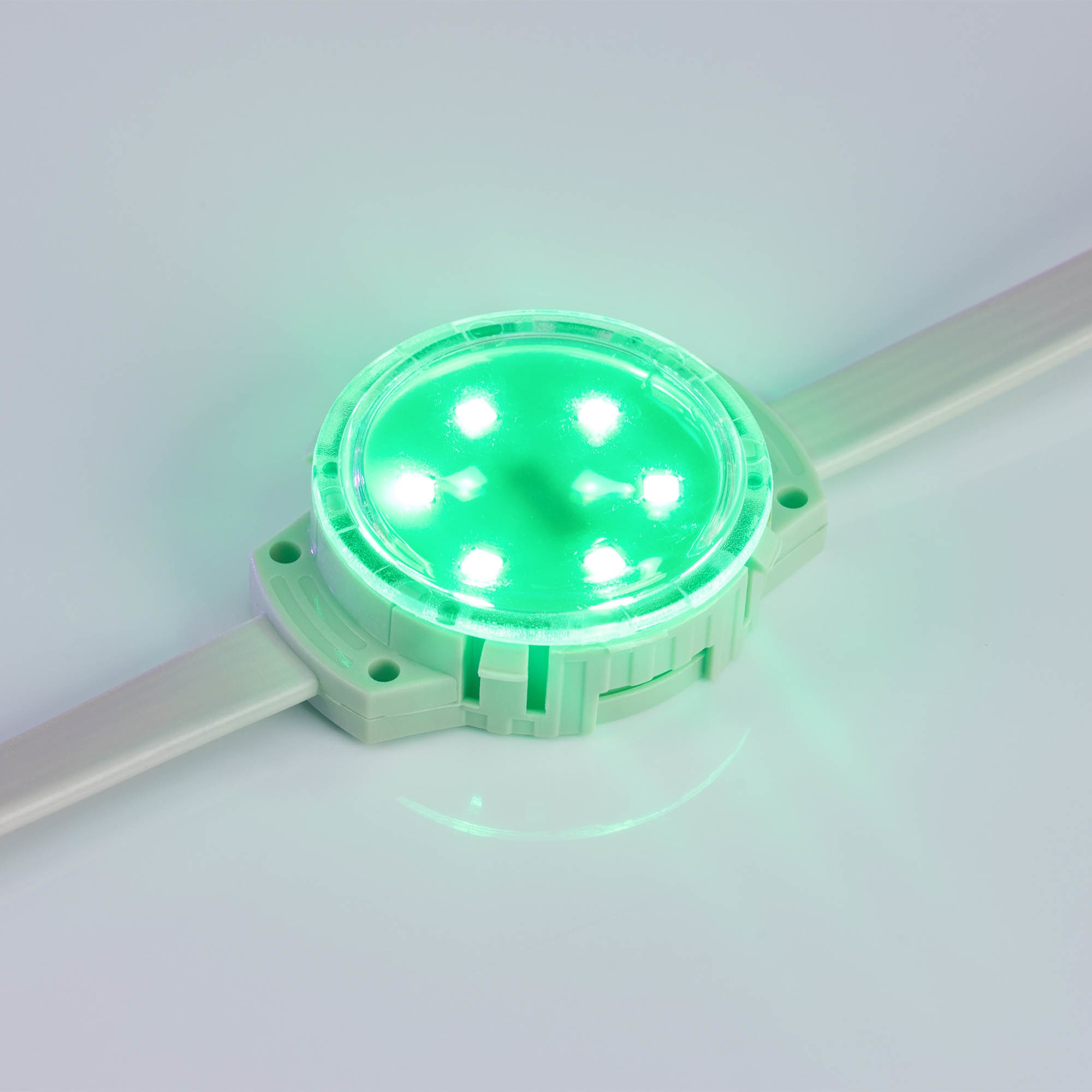 Характеристики - Модуль управляемый SOLEX-DMX-3535-6-24V RGB 120deg (D40x16mm, 1.5W, IP67) (Arlight, Пластик, 3 года)