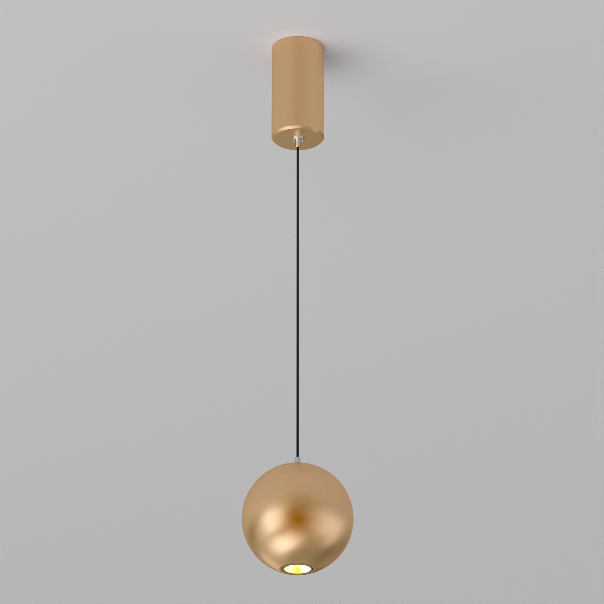 Подвесной светильник SP-ELEMENTA-ORB-R100-9W Warm3000 (GD, 39 deg, 230V) мощностью 9 Вт с теплым белым цветом свечения (3000 К) и индексом цветопередачи CRI>80 предназначен для освещения торговых, офисных, жилых и других помещений. У светильника стильный дизайн и качественное исполнение, поэтому он станет не только источником света, но и стильным декоративным элементом любого интерьера. Световой поток 650 лм и узкий угол излучения 39° помогут при создании световых акцентов. Коэффициент пульсации менее 5% гарантирует комфортное и приятное для глаз освещение без мерцания. Подвесной монтаж и удобная регулировка длины подвеса без специального инструмента. Встроенный драйвер обеспечивает быстрое подключение к сети переменного тока 230 В.