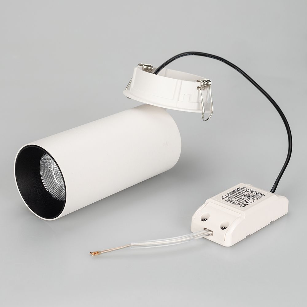 Встраиваемый откидной светильник SP-POLO-BUILT-R65-8W Day4000 (WH-BK, 40 deg) мощностью 8 Вт с дневным белым цветом свечения (4000 К). Индекс цветопередачи CRI>80 обеспечивает качественный свет, не вызывающий переутомления глаз. Компактный цилиндрический корпус совместим с разными типами потолков, а окрашенная декоративная вставка придаст оригинальность в любом интерьере. Откидной механизм предусматривает возможность быстрой регулировки направления света. Световой поток 570 лм и узкий угол излучения 40° для акцентного и локального освещения, а также для реализации дизайнерских решений в разных помещениях. Монтируется в монтажное отверстие Ø75 мм. Драйвер для подключения к сети 230 В поставляется в комплекте.