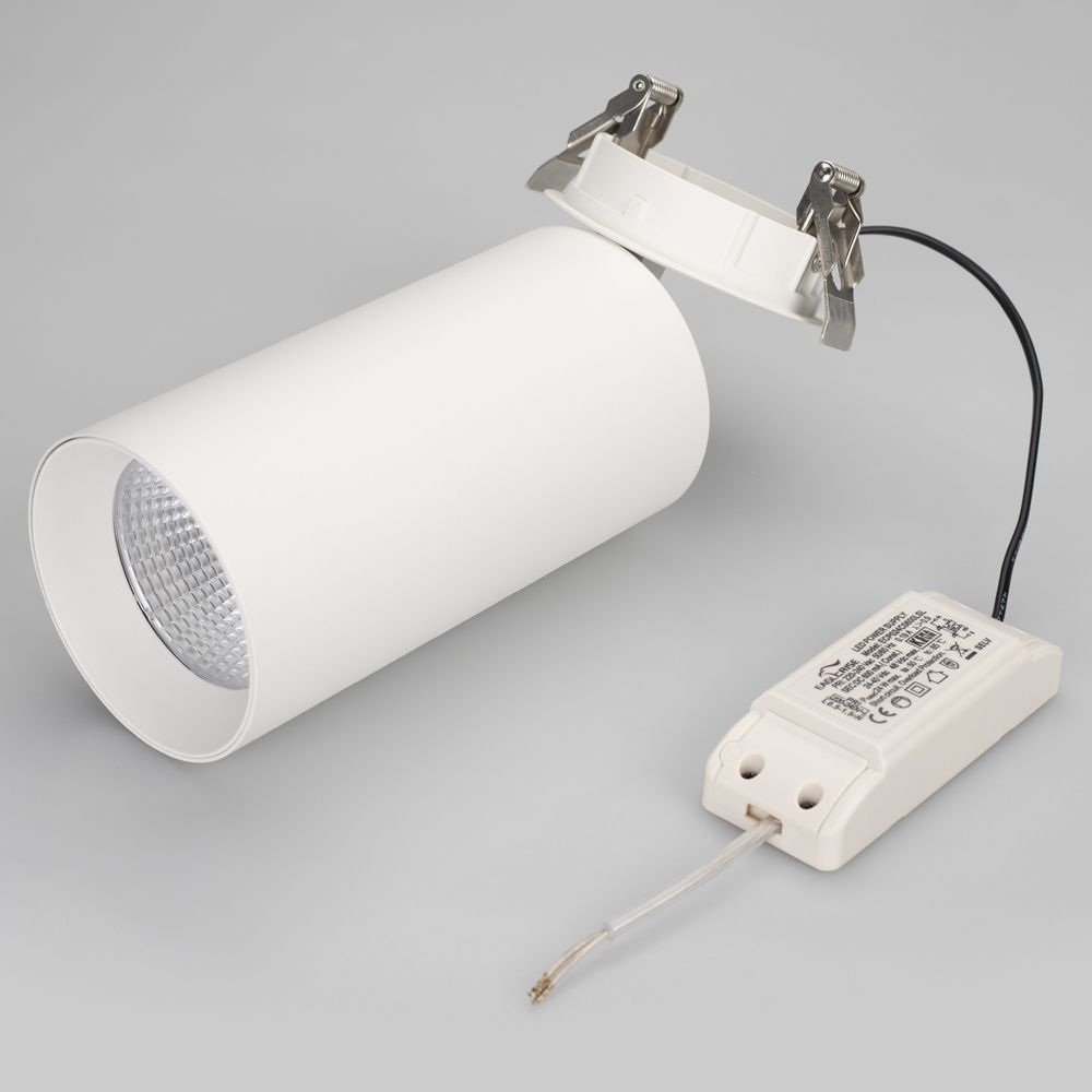 Встраиваемый откидной светильник SP-POLO-BUILT-R95-25W Day4000 (WH-WH, 40 deg) мощностью 25 Вт с дневным белым цветом свечения (4000 К). Индекс цветопередачи CRI>80 обеспечивает качественный свет, не вызывающий переутомления глаз. Компактный цилиндрический корпус совместим с разными типами потолков, а окрашенная декоративная вставка придаст оригинальность в любом интерьере. Откидной механизм предусматривает возможность быстрой регулировки направления света. Световой поток 2530 лм и узкий угол излучения 40° для акцентного и локального освещения, а также для реализации дизайнерских решений в разных помещениях. Монтируется в монтажное отверстие Ø90 мм. Драйвер для подключения к сети 230 В поставляется в комплекте.