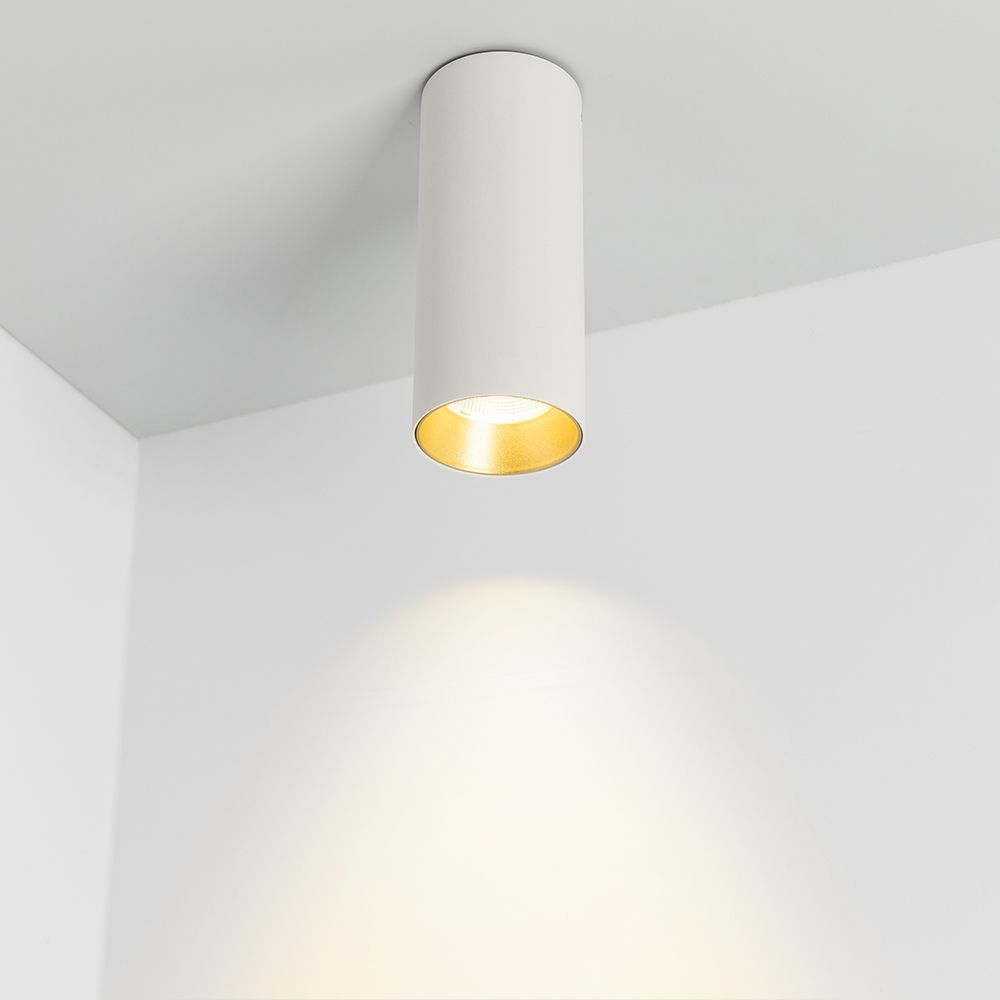 Накладной светильник SP-POLO-SURFACE-R65-8W Day4000 (WH-GD, 40 deg) мощностью 8 Вт с дневным белым цветом свечения (4000 К) и световым потоком 570 лм. Индекс цветопередачи CRI>80 обеспечивает качественный свет, не вызывающий переутомления глаз. Компактный цилиндрический корпус совместим с разными типами потолков, а окрашенная декоративная вставка придаст оригинальность в любом интерьере. Узкий угол излучения 40° позволяет организовать акцентное и локальное освещение в разных типах помещений. Встроенный драйвер обеспечивает быстрое и безопасное подключение к сети 230 В.