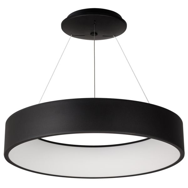 Подвесной светодиодный светильник SP-TOR-RING-HANG-R600-42W Day4000 (BK, 120 deg) мощностью 42 Вт с дневным белым цветом свечения (4000 К) предназначен для основного и декоративного освещения в жилых, офисных и других помещениях. Светильник в современном стиле хай-тек с широким углом излучения 120° и световым потоком 2400 лм будет оригинально и эффектно смотреться в разных интерьерах. Максимальная длина подвеса 1200 мм, длину можно регулировать. Подключение светильника осуществляется с помощью встроенного драйвера напрямую к сети переменного тока 230 В. Индекс цветопередачи CRI>80 отвечает за отличное восприятие цветов. Пульсация менее 5% обеспечивает комфортное освещение без мерцания. Корпус светильника выполнен с защитой от пыли IP20, и позволяет применять его внутри помещений, где нет контакта с водой или другими жидкостями.