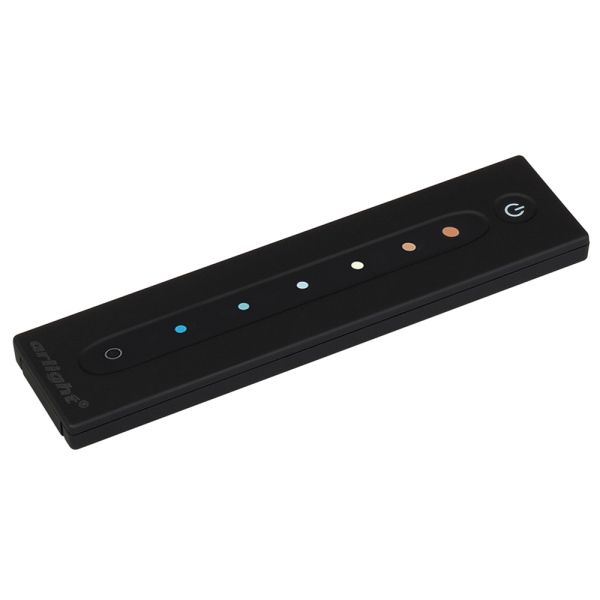 Пульт-слайдер черного цвета для управления контроллерами серий SR, Excellent. Позволяет осуществлять включение/выключение источников света, реуглировку цветовой температуры. Настенный держатель в комплекте. Питание пульта осуществляется от 6В - 2 батарейки CR2025. Габариты составляют 141x35x8 мм, пластиковый корпус чёрного цвета.