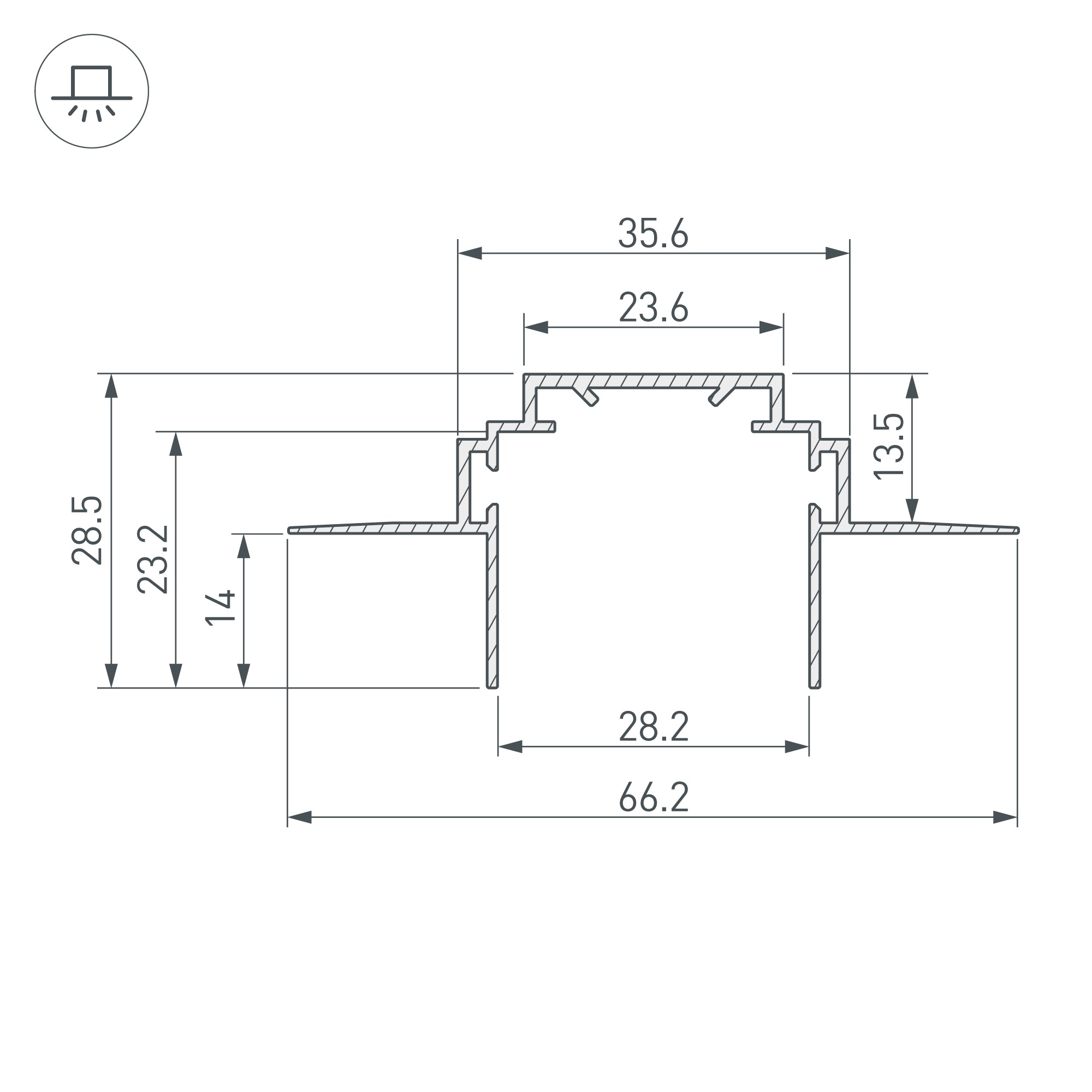 Алюминиевый профиль-держатель для установки в гипсокартон толщиной 12,5 мм любого профиля серии PLS-LOCK при помощи клипс TEK-PLS-CLIP. Габаритные размеры профиля составляют 2000 мм в длину, 66,2 мм в ширину и 28,5 мм в высоту. Заглушки и другие аксессуары приобретаются отдельно. Цена указана за 1 метр профиля.