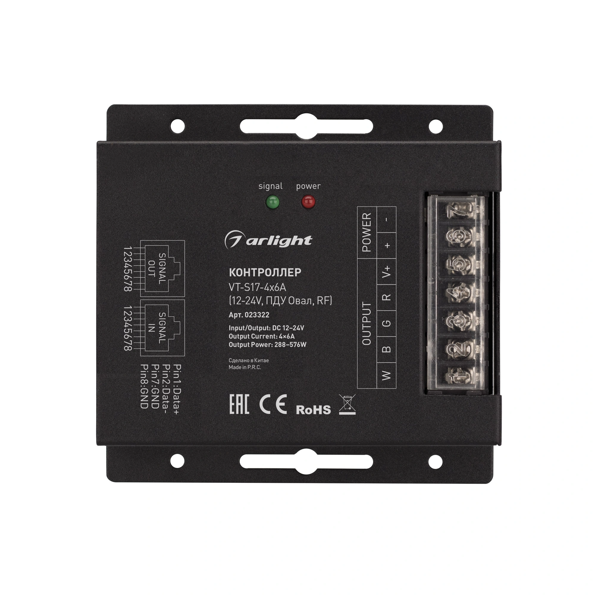 Характеристики - Контроллер VT-S17-4x6A (12-24V, ПДУ Овал, RF) (Arlight, IP20 Металл, 3 года)