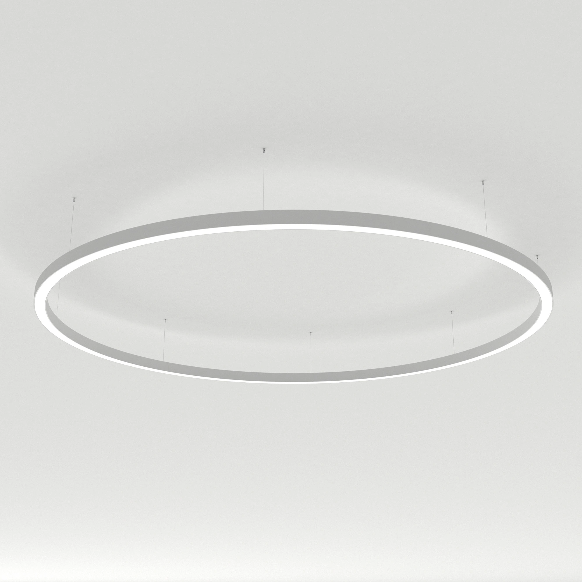 Светильник КОЛЬЦО из профиля SL-ARC-3535-D1500-A90 WHITE, свечение вниз, цвет Дневной 4000 K (Дуговая линейка ARC арт.027642 в 1 ряд). Диаметр 1500 мм, сечение - 36x36 мм. Способ установки - подвесной 2м. Цвет корпуса - белый RAL9003, класс защиты IP20. Световой поток на 6075 лм. Мощность 102 Вт, питание 230 В. В комплекте 1 шт блок питания арт.028789, внешний, без управления, кабель и подвесы. Гарантия 36 мес. Поставка в сборе