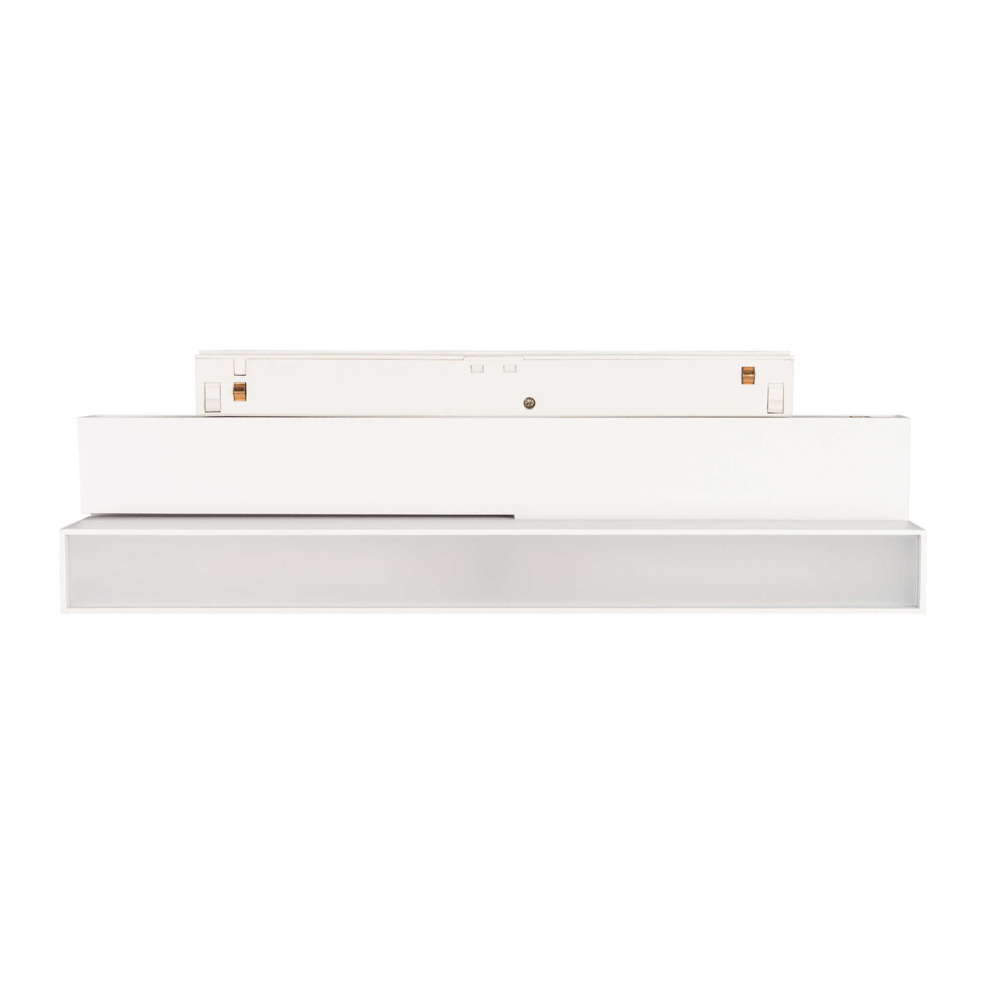 Поворотный светильник ORIENT-FLAT-FOLD мощностью 12 Вт для магнитных треков MAG-ORIENT шириной 26 мм с управлением по DALI. Дневной цвет свечения (4000 К), световой поток 760 лм, световая эффективность 64 лм/Вт и высокий индекс цветопередачи обеспечивают качественное, равномерное освещение. Прямоугольный корпус из алюминия белого цвета. Светильник быстро и надежно крепится на трек с помощью магнитов и механических фиксаторов. Корпус светильника отклоняется на 90 градусов по вертикали относительно потолка. Угол излучения 80 градусов подойдет для организации общего освещения, а матовый экран создает рассеянное свечение. Имеет защиту от пыли IP20 для применения внутри помещений, где нет контакта с жидкостями. Минимальный коэффициент пульсации гарантирует зрительный комфорт без мерцания. Гарантия до 5 лет указывает на надежность и длительную работоспособность.
