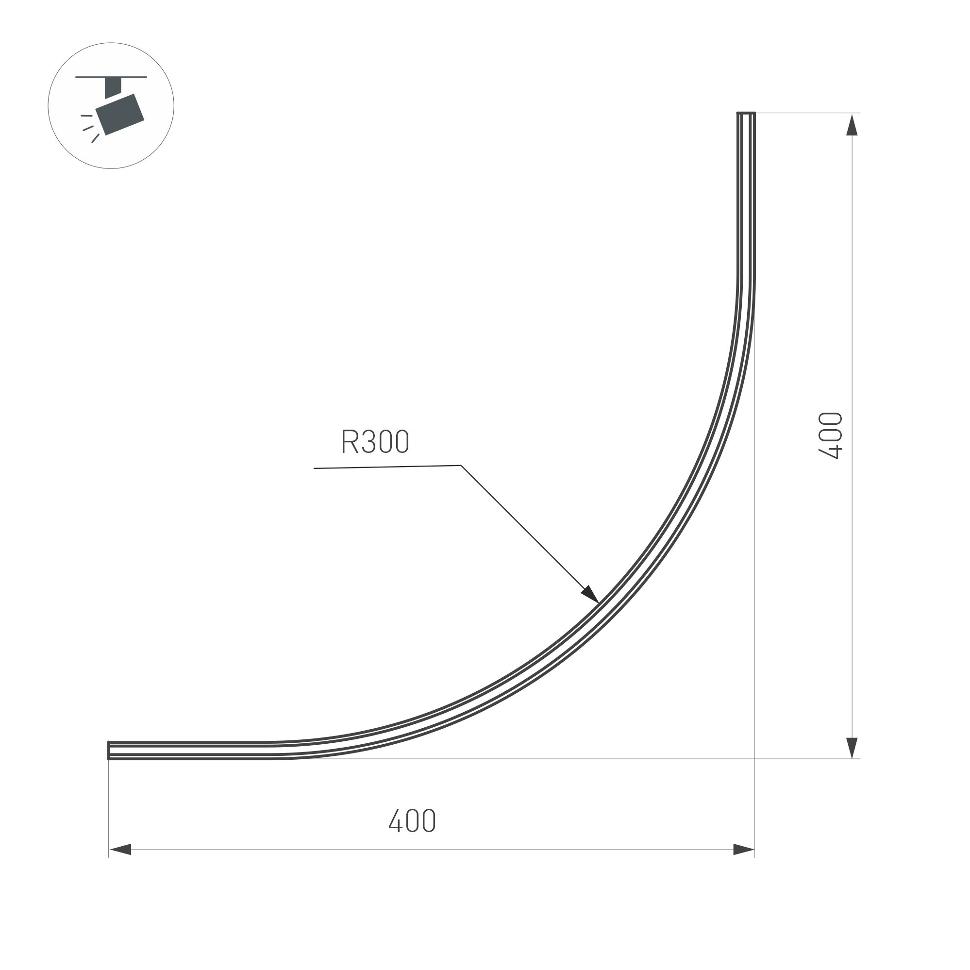 Магнитный трек MAG-MICROCOSM-TRACK-1115-ARC-R600, размер 400 мм * 400 мм, высотой 15 мм, радиусом изгиба 300 мм, с напряжением питания 24В предназначен для накладного монтажа. Цвет черный, заглушки в комплект не входят. Блок питания постоянного напряжения 24 В для подключения трек-системы к сети 230В приобретается отдельно. Комбинируя прямой и радиусный трек можно составлять оригинальные световые линии.