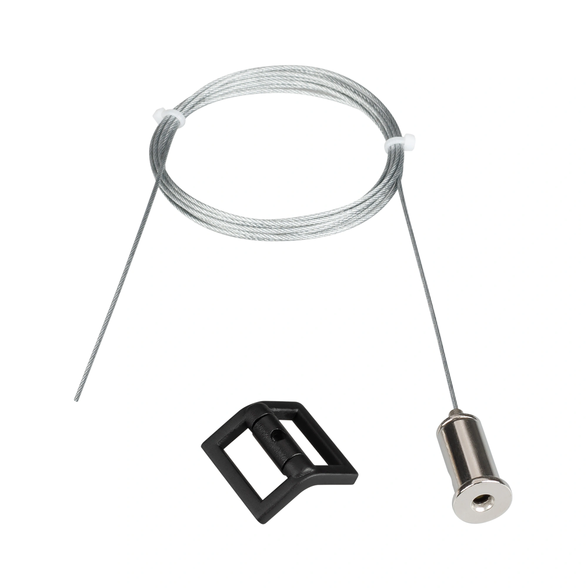 Подвес-фиксатор для токопроводящего ремня ART-INBELT-CON-HANG для v-образного крепления токопроводящего ремня серии ART-INBELT. Крепится к поверхности (потолку) при помощи стального троса ∅1.2х2000мм и монтажного крепежа (в комплекте), позволят точечно фиксировать гибкий трек-ремень, устранить провисание. Размер: 28x28x12 мм. Цвет: черный. Материал: пластик + алюминий.