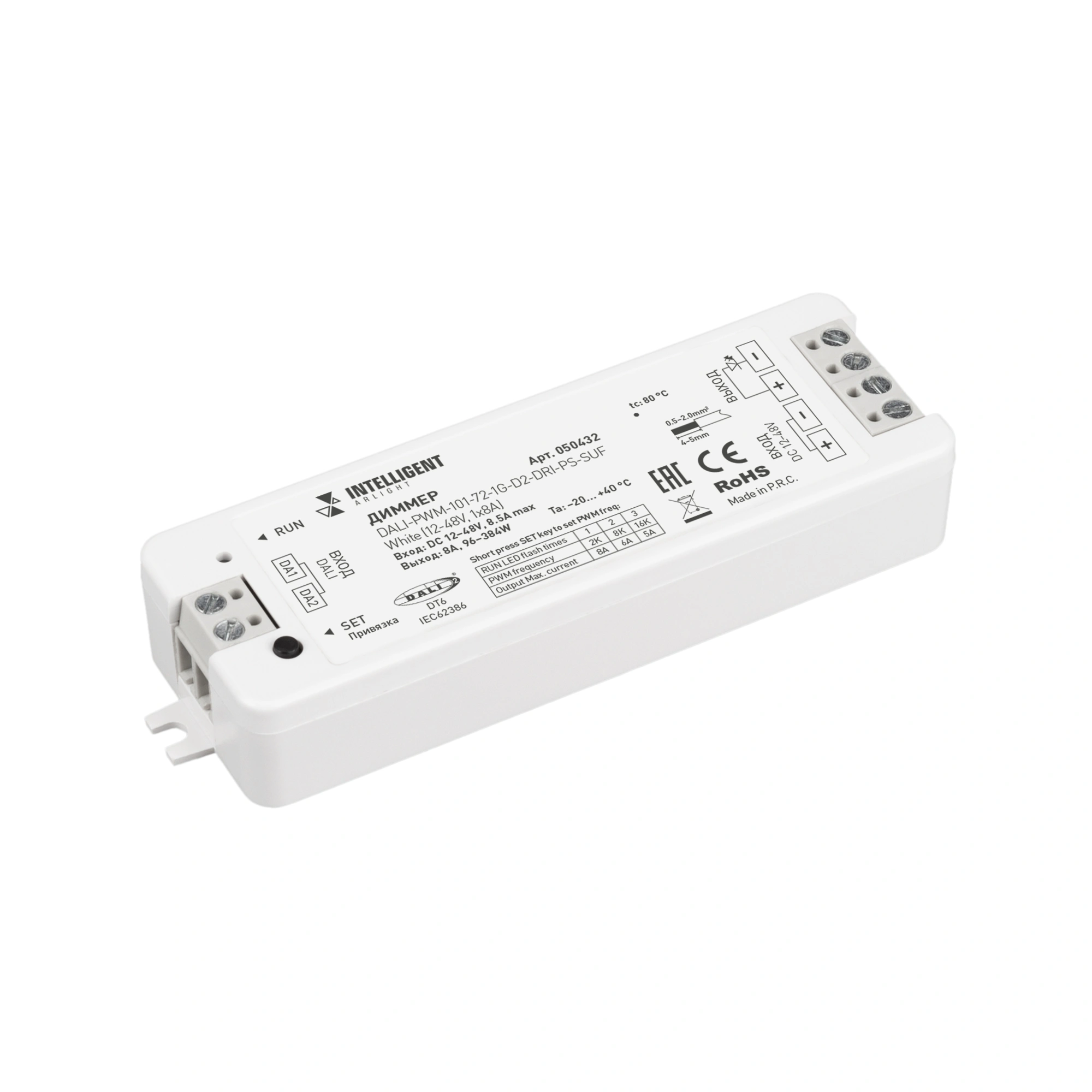 INTELLIGENT ARLIGHT Диммер DALI-PWM-101-72-1G-D2-DRI-PS-SUF White (12-48V, 1x8A) (IARL, IP20 Пластик, 5 лет)