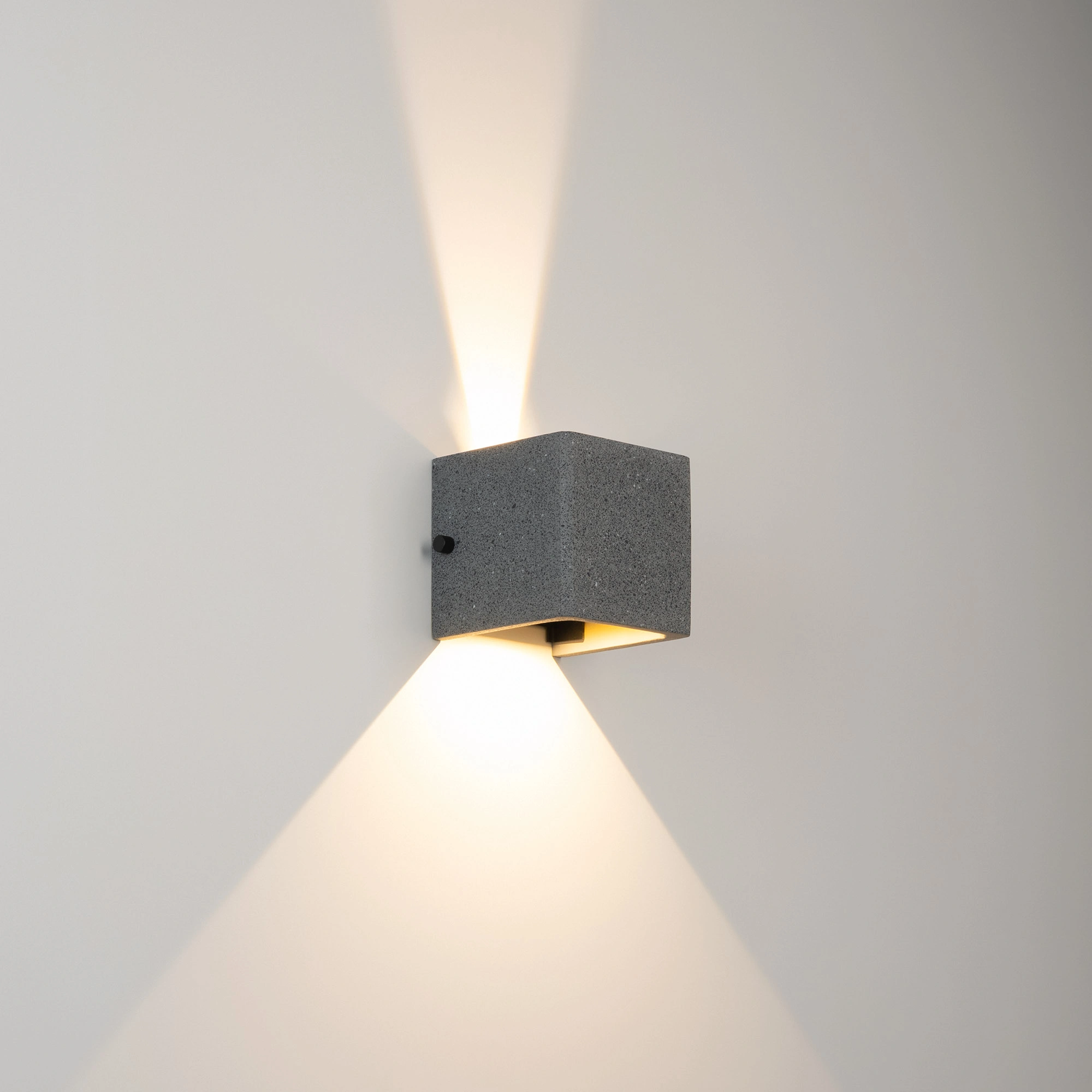 Уличный настенный светильник серии PERAN с двусторонним свечением вверх-вниз теплого белого цвета (3000 К) предназначен для архитектурной подсветки. Квадратный, бетонный корпус серого цвета будет гармонично смотреться на фасадах зданий. Мощность светильника составляет 6 Вт, световой поток — 286 лм. Угол излучения с обеих сторон можно регулировать в диапазоне от 0 до 80°, создавая свечение, подходящее именно под ваши задачи. Экран из ударопрочного поликарбоната и корпус со степенью пылевлагозащиты IP65 гарантируют надежную эксплуатацию светильника как на открытом воздухе, так и в помещении. Встроенный драйвер позволяет безопасно и быстро подключить светильник к сети 230В.
