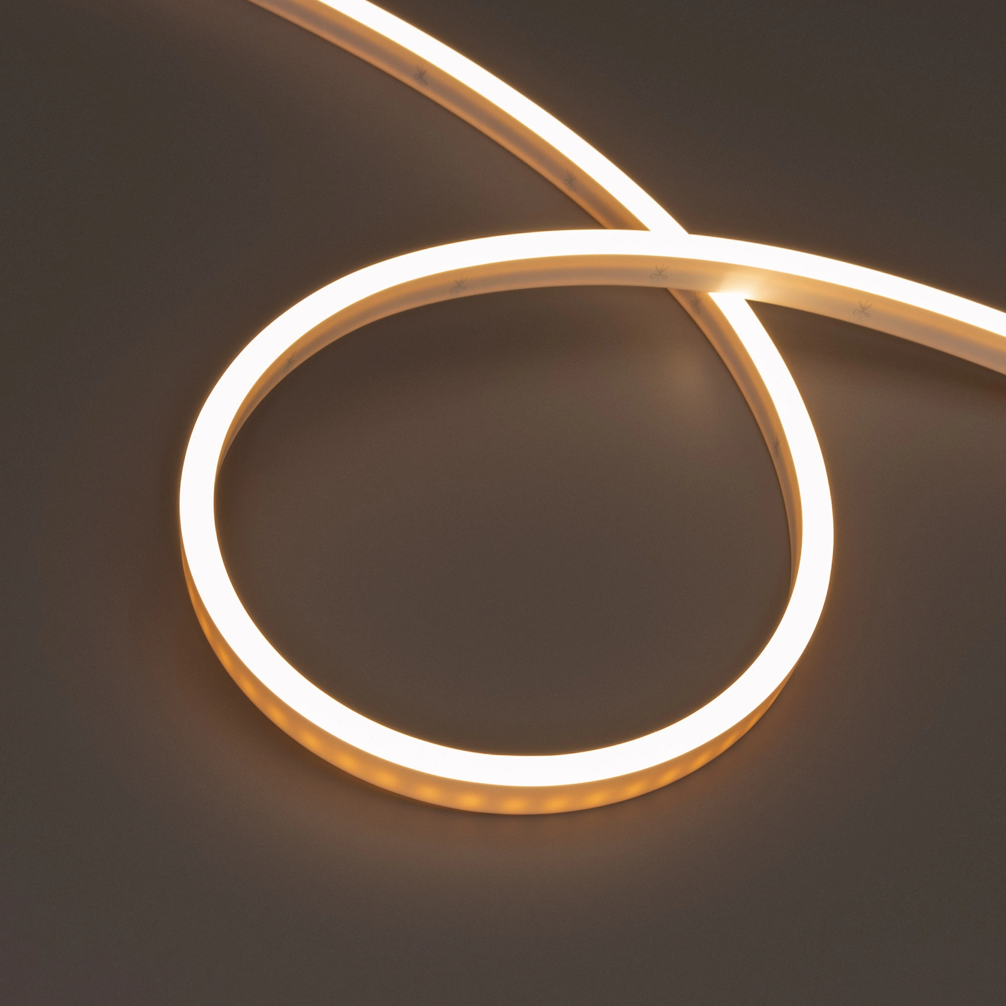 Гибкая герметичная лента WAVE имеет сечение 06×15 мм и оснащена 120 светодиодами SMD2835 на метр. Теплый белый цвет свечения (3000К) и световой поток в 398 лм/м позволят добиться комфортного освещения, а высокий индекс цветопередачи (CRI>90) позволяет создать отличную различимость цветовых оттенков. Лента потребляет всего 8 Вт/м и работает от 24 V. Она обладает классом пылевлагозащиты IP68 и полиуретановую оболочку, что позволяет использовать ленту в т.ч. при воздействии морской и хлорированной воды, и имеет минимальный радиус изгиба 150 мм (сам изгиб горизонтальный/SIDE). Лента не подлежит резке. Угол излучения - 125°. Габариты ленты составляют 5000×06×12 мм. Кабель питания длиной 2000 мм выводится с двух сторон вдоль линии сечения ленты. Катушка содержит 5 м ленты. Цена указана за 1 м ленты. Гарантия на ленту составляет 3 года. Список совместимых аксессуаров, с помощью которых можно создавать уникальные декоративные композиции, находится в разделе "Совместимые".