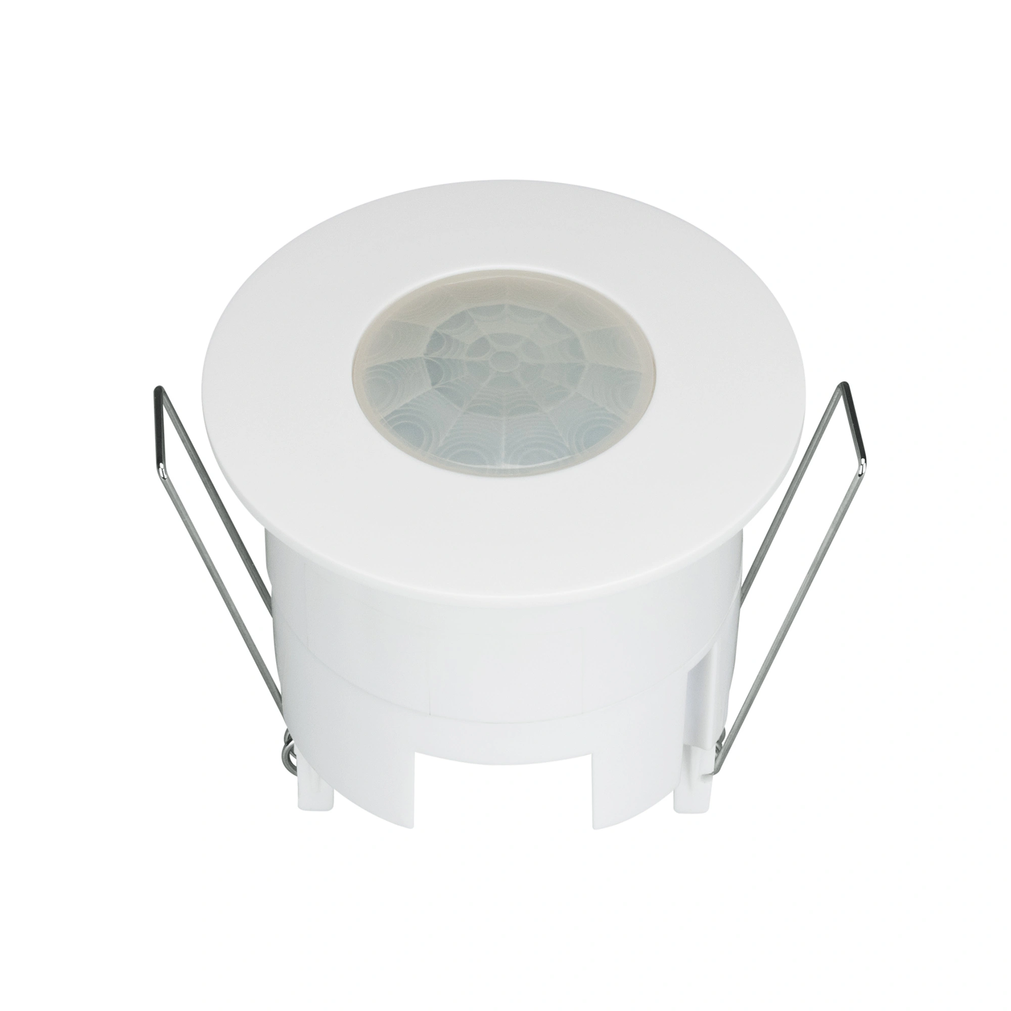 Этот многофункциональный датчик встраиваемого монтажа имеет пассивный инфракрасный детектор движения с сенсором освещенности для интеллектуального управления светом. Датчик работает от сети 110-240V AC и управляет нагрузкой до 5А (1200 Вт для резистивной нагрузки, 180 Вт для светодиодных ламп и светильников). Гибкие настройки включают регулировку времени отключения от 5 секунд до 60 минут, выбор дистанции обнаружения (1,7/2,6/3,5 м) и порога освещенности от 5 до 2000 люкс. Устройство поддерживает технологию TUYA Wi-Fi и Bluetooth для удаленного управления через приложения INTELLIGENT ARLIGHT и Smart Life. В приложении доступны переключение между ручным режимом и режимом датчика, тонкая настройка всех параметров и создание автоматических сценариев работы освещения. При потолочной установке датчик обеспечивает круговой охват 360°, с углом обзора 110° дистанцией срабатывания от 1,5 до 3,5 метров. Цвет корпуса - белый. Материал корпуса - пластик. Устройство имеет габаритные размеры 76х76х72 мм.