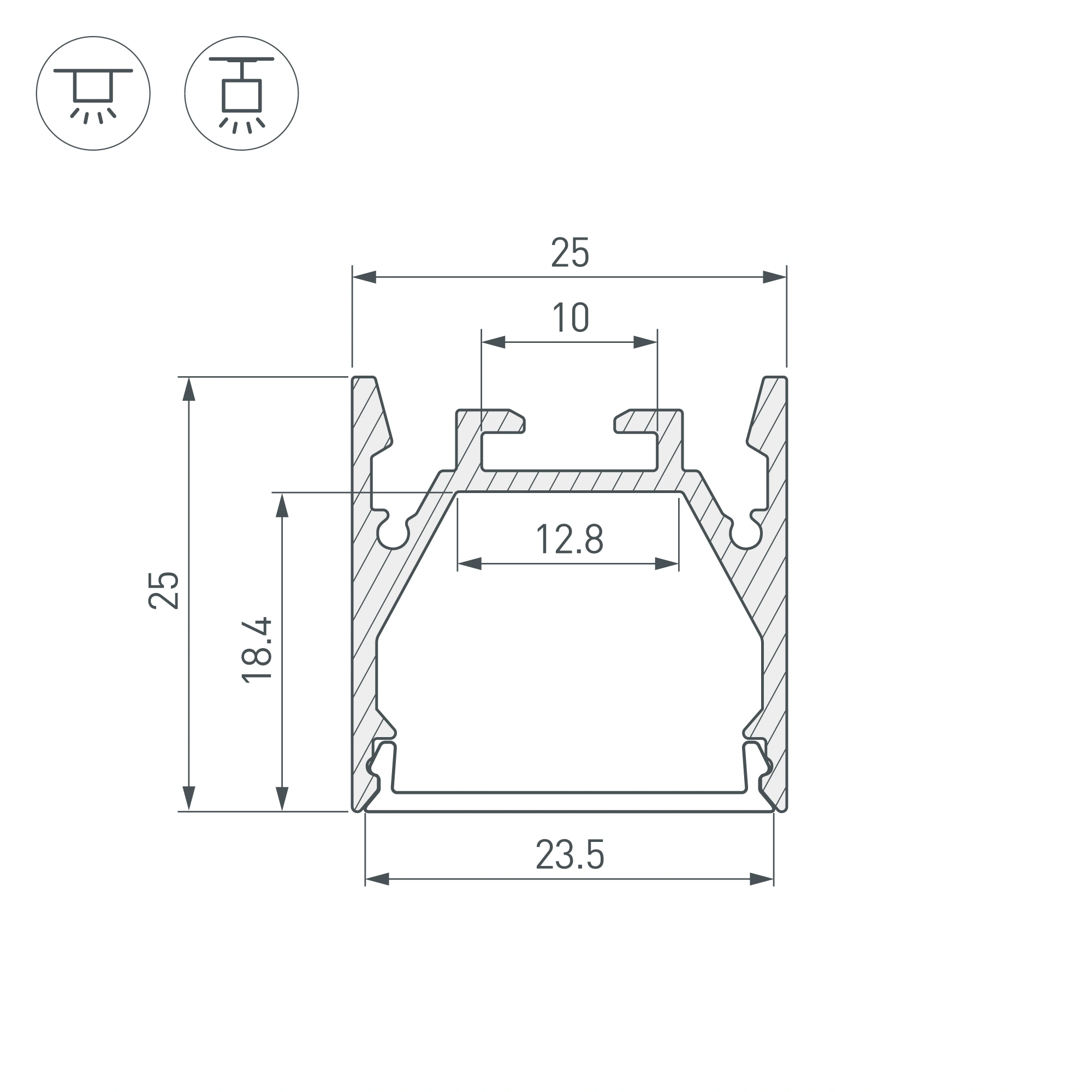 Характеристики - Профиль LINE-2525-2000 ANOD (Arlight, Алюминий)