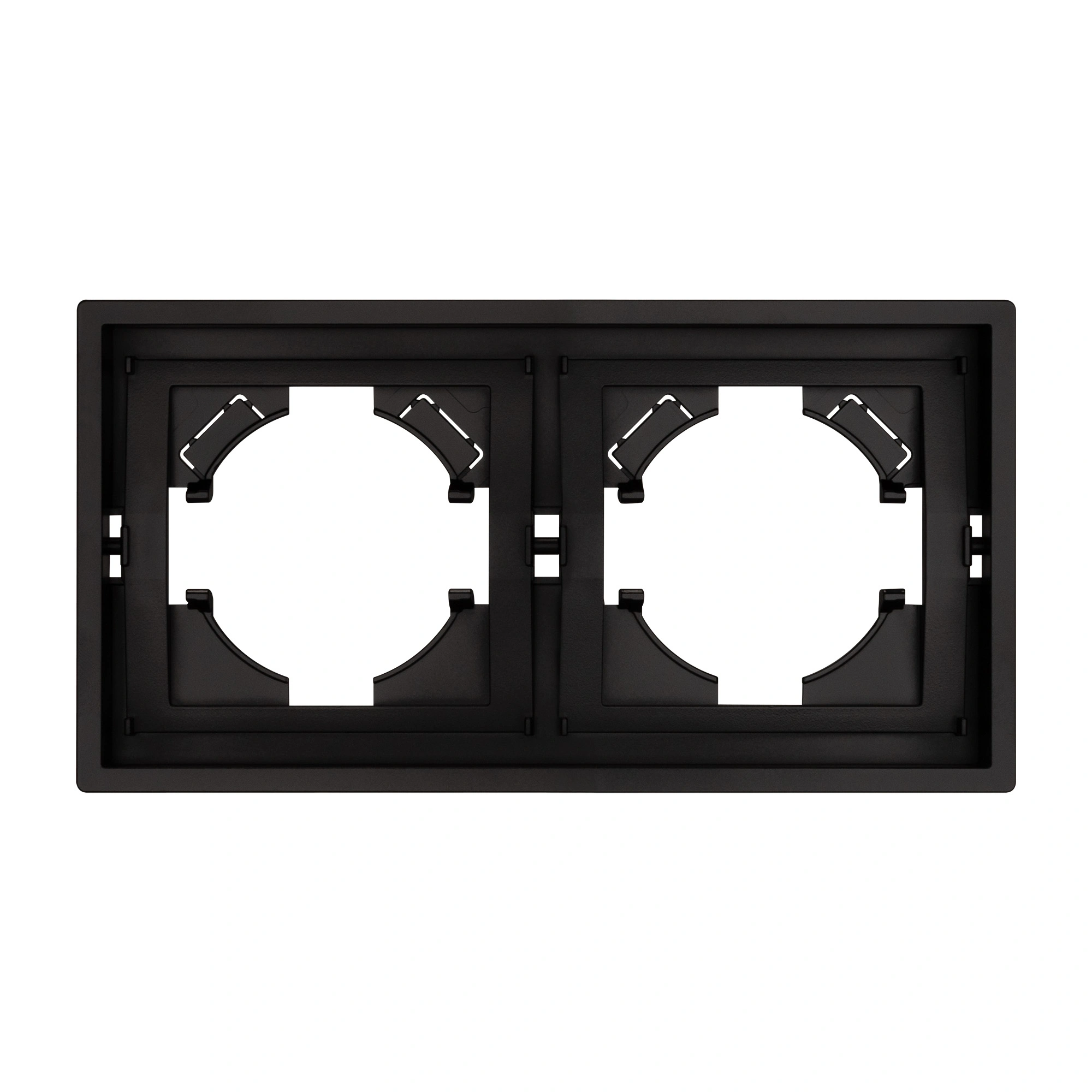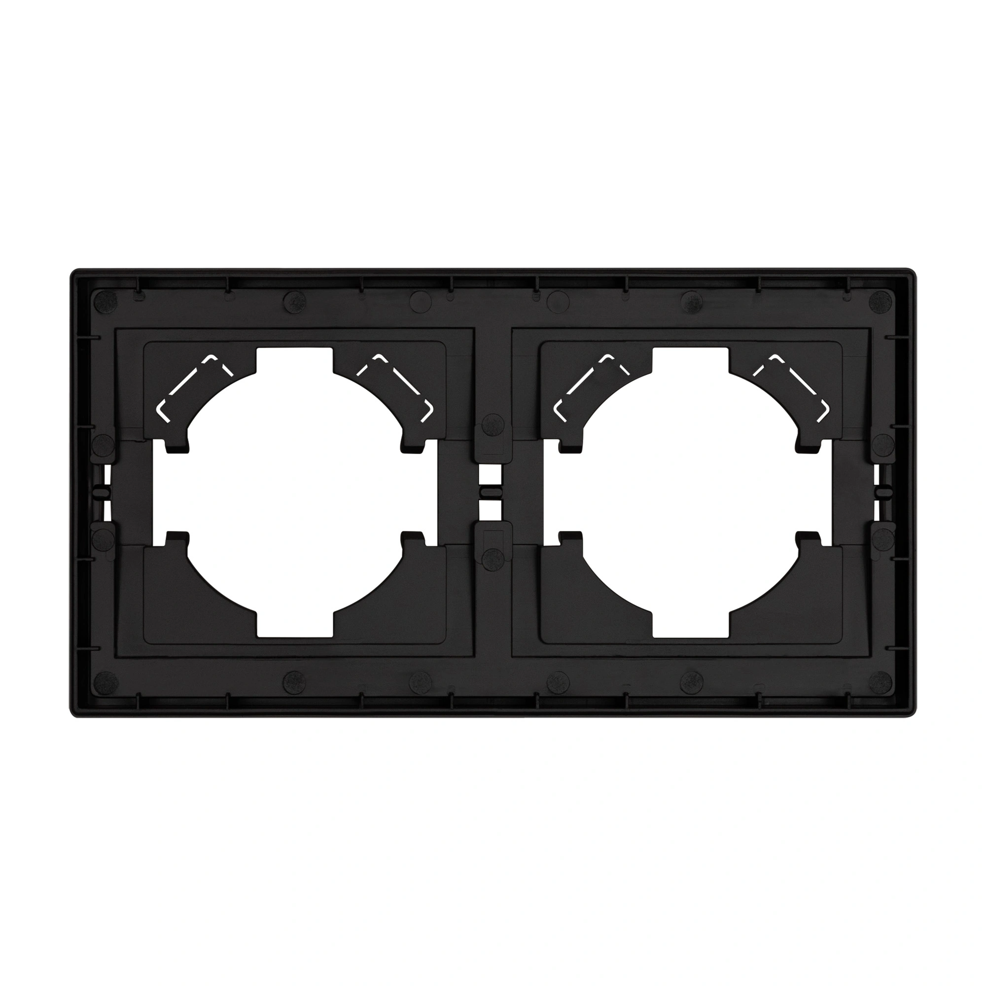 Рамка пластиковая на 2 поста, под встраиваемый механизм. Цвет - черный. Среднего уровня герметичности IP20. Ориентация монтажа горизонтальная. Габаритные размеры: длина 150 мм, ширина 80 мм, высота 9 мм. Гарантийный срок 12 мес.