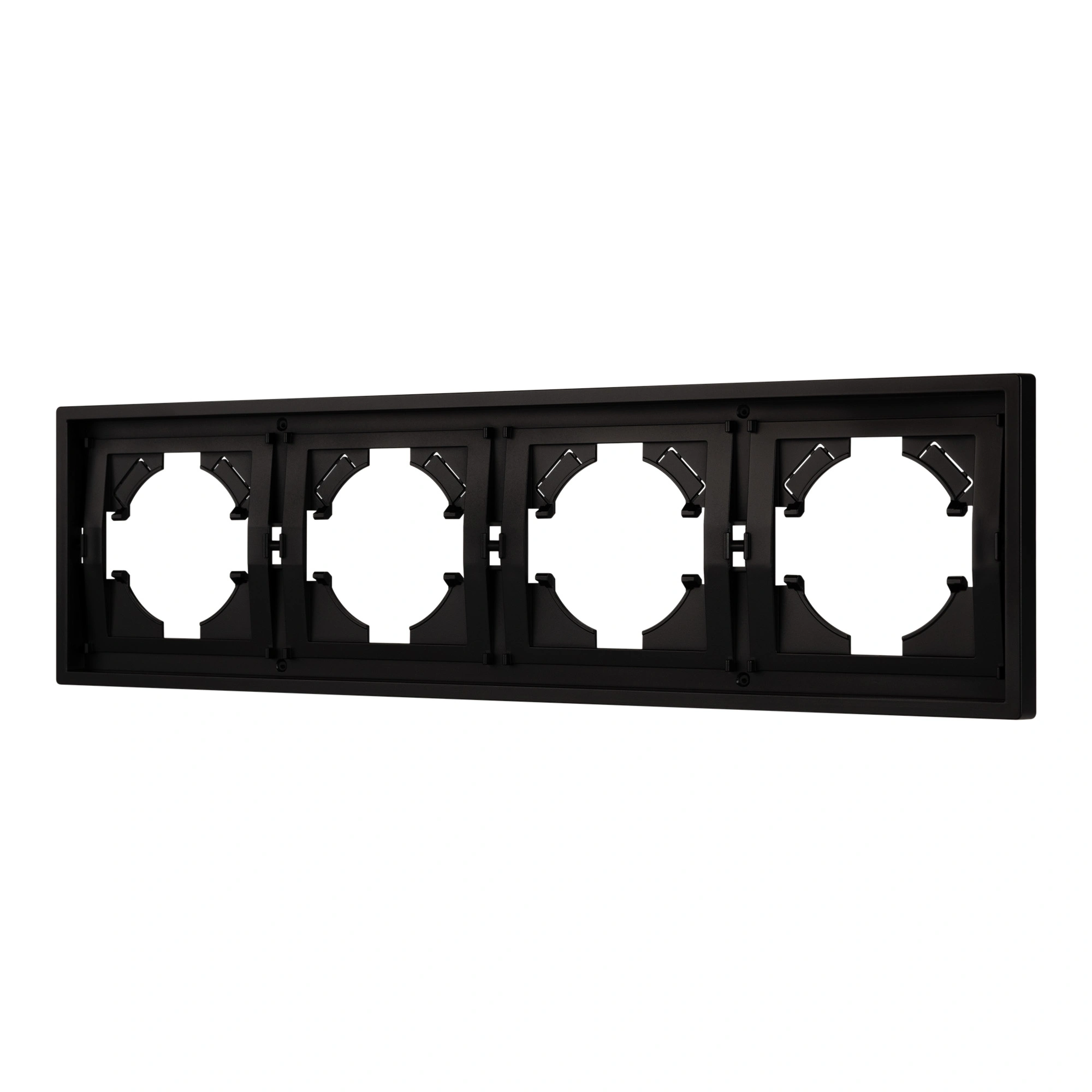 Рамка пластиковая на 4 поста, под встраиваемый механизм. Цвет - черный. Среднего уровня герметичности IP20. Ориентация монтажа горизонтальная.