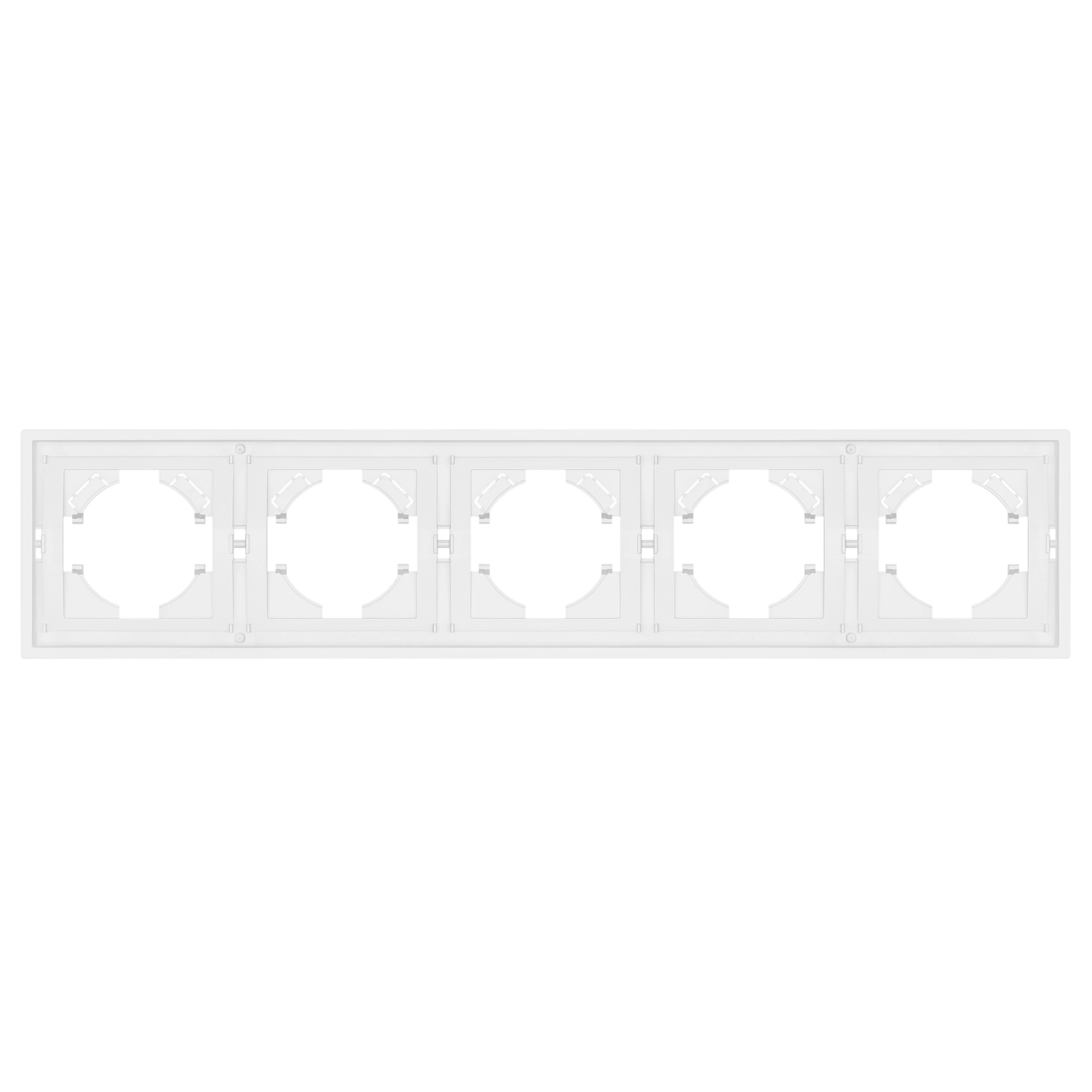 Рамка пластиковая на 5 постов, под встраиваемый механизм. Цвет - белый. Среднего уровня герметичности IP20. Ориентация монтажа горизонтальная.