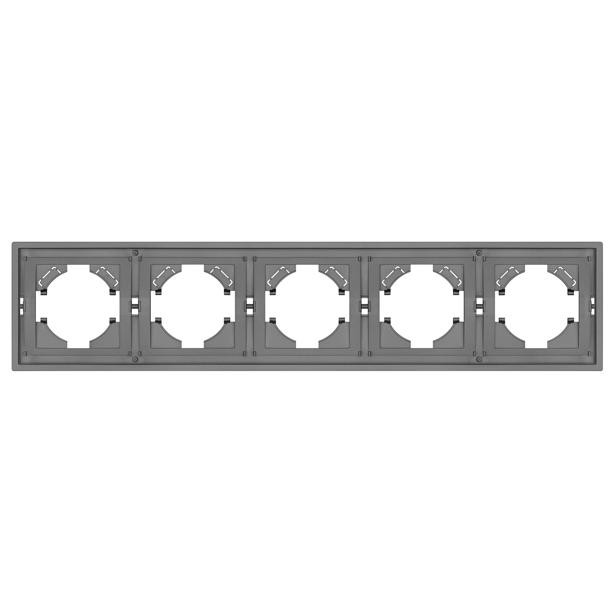 Рамка пластиковая на 5 постов, под встраиваемый механизм. Цвет - серый. Среднего уровня герметичности IP20. Ориентация монтажа горизонтальная.