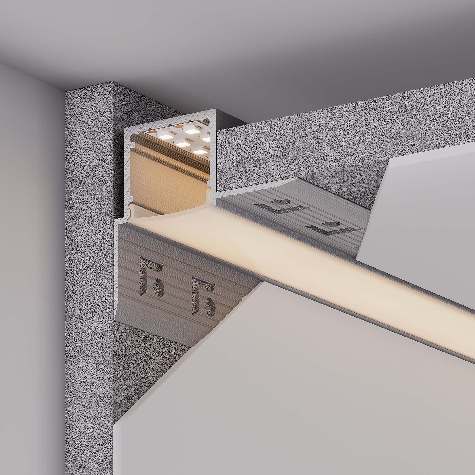 Встраиваемый профиль со скрытым фланцем под строительную отделку из алюминия для основной и контурной подсветки помещений. Габаритные размеры профиля составляют 2000 мм в длину, 46,2 мм в ширину и 40 мм в высоту. Площадка для установки светодиодных лент позволяет использовать ленту шириной до 14,6 мм. Это обеспечивает гибкость в выборе светодиодных лент и создает потрясающие световые решения. Экраны, заглушки и другие аксессуары не включены в комплект и приобретаются отдельно. Цена указана за 1 метр профиля. Отличное решение для создания современных световых проектов.