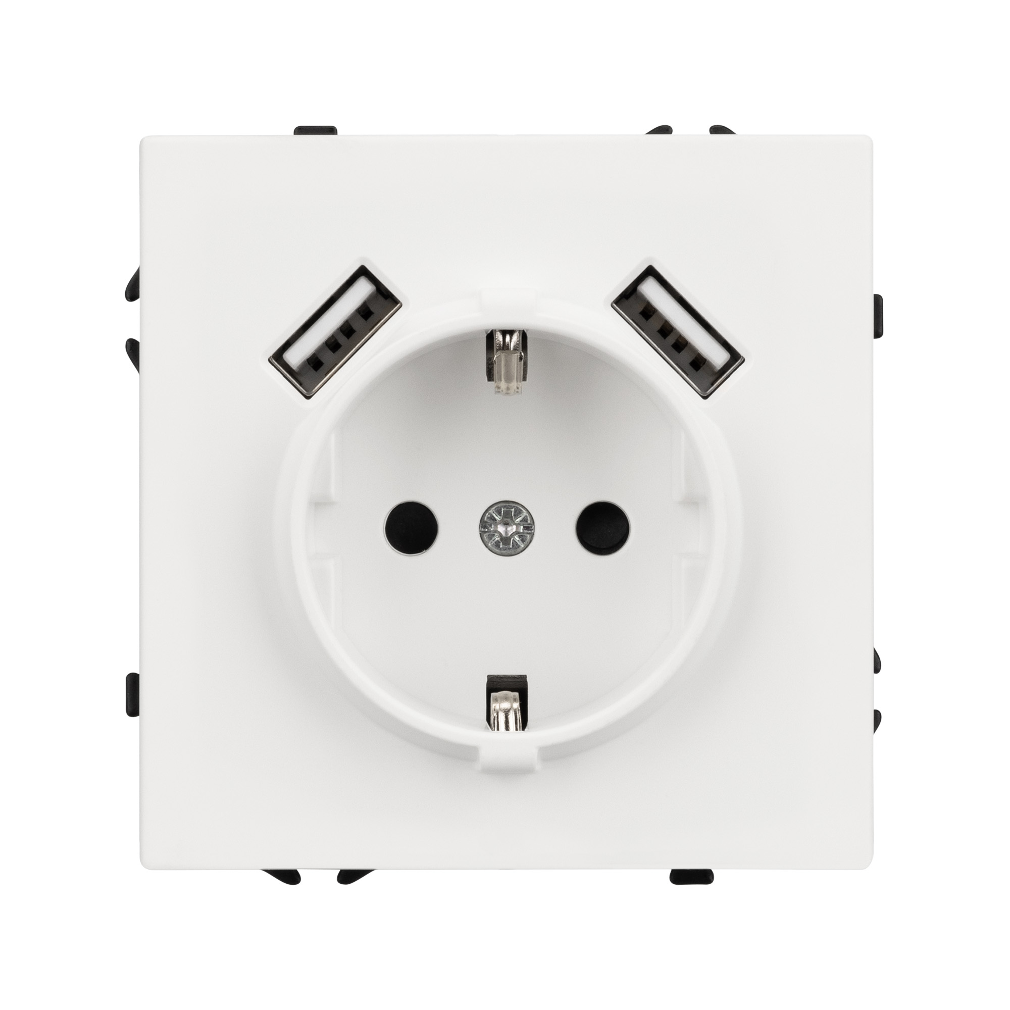 Строгие геометрические линии гармонично сочетаются с функциональностью продуманных механизмов, создавая идеальное решение для дизайн-проектов, где важны как эстетика, так и практичность. Механизм розетки с USB зарядкой, совместимый с рамками серии NOBE, создает утонченный минималистичный вид. Наличие двух USB Type A портов позволяет существенно сократить количество используемых розеточных постов под евровилку, сохраняя единую стилистику интерьера всего современного дизайн-проекта. Видимая часть механизма выполнена из высококачественного пластика белого цвета и имеет Soft-Touch покрытие, что придает изделию приятные тактильные ощущения и стильный внешний вид. Розетка оснащена заземляющими контактами и защитными шторками, обеспечивая надежное и безопасное подключение электроприборов. Контактная часть присоединяется при помощи винтовых зажимов, позволяя надежно подсоединить механизм выключателя к питающим элементам. А усиленные распорные лапки двойного захвата надежно фиксируют механизм в установочном подрозетнике круглого сечения диаметром от 60мм. Суппорт окрашен в черный матовый цвет под основу механизма и выполнен из металла толщиной 1,5мм, что обеспечивает безопасность и уверенность в установке. На каждой стороне суппорта размещены фиксирующие элементы, позволяющие комбинировать механизмы в системы до 5шт как горизонтально, так и вертикально.