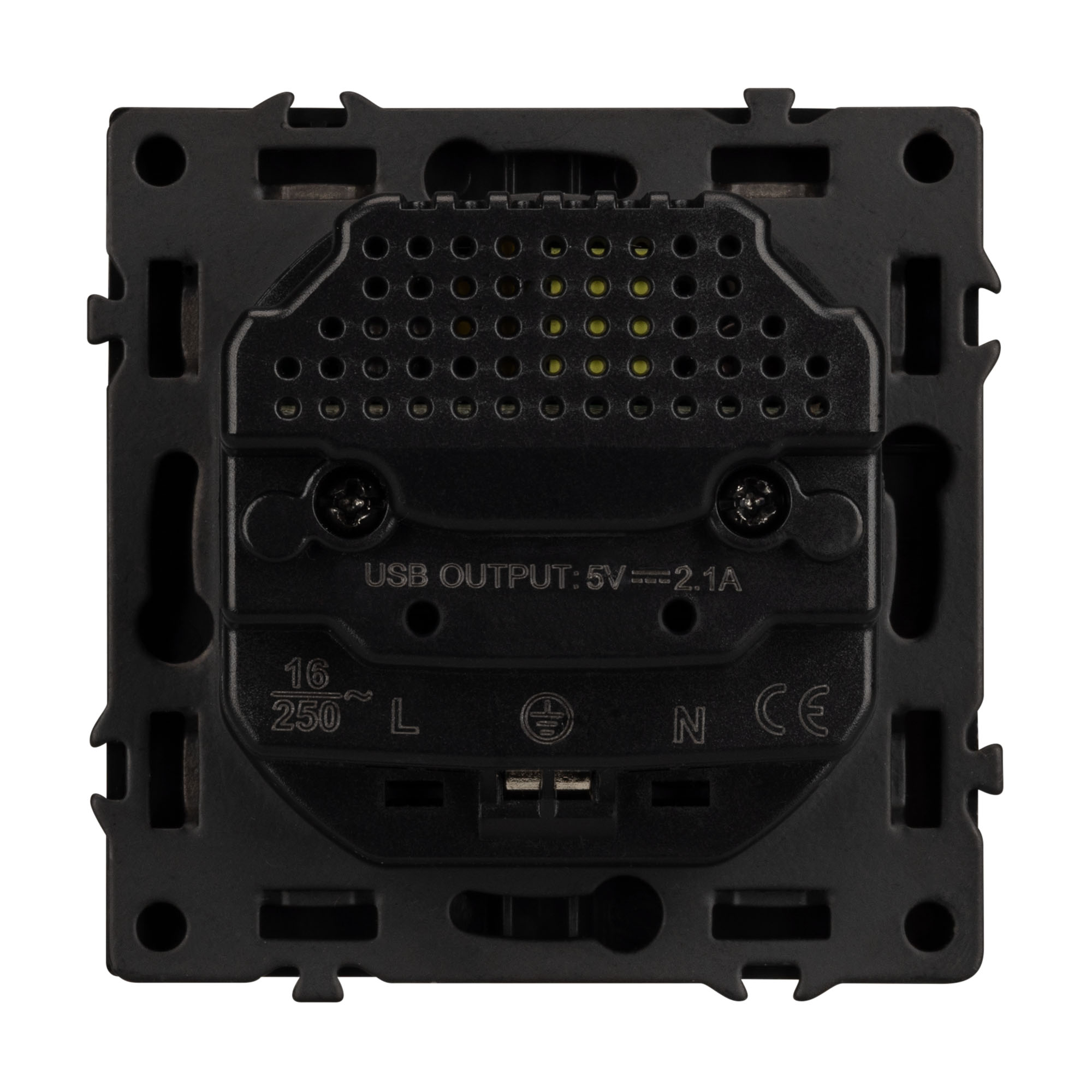 Строгие геометрические линии гармонично сочетаются с функциональностью продуманных механизмов, создавая идеальное решение для дизайн-проектов, где важны как эстетика, так и практичность. Механизм розетки с USB зарядкой, совместимый с рамками серии NOBE, создает утонченный минималистичный вид. Наличие двух USB Type A портов позволяет существенно сократить количество используемых розеточных постов под евровилку, сохраняя единую стилистику интерьера всего современного дизайн-проекта. Видимая часть механизма выполнена из высококачественного пластика черного цвета и имеет Soft-Touch покрытие, что придает изделию приятные тактильные ощущения и стильный внешний вид. Розетка оснащена заземляющими контактами и защитными шторками, обеспечивая надежное и безопасное подключение электроприборов. Контактная часть присоединяется при помощи винтовых зажимов, позволяя надежно подсоединить механизм выключателя к питающим элементам. А усиленные распорные лапки двойного захвата надежно фиксируют механизм в установочном подрозетнике круглого сечения диаметром от 60мм. Суппорт окрашен в черный матовый цвет под основу механизма и выполнен из металла толщиной 1,5мм, что обеспечивает безопасность и уверенность в установке. На каждой стороне суппорта размещены фиксирующие элементы, позволяющие комбинировать механизмы в системы до 5шт как горизонтально, так и вертикально.