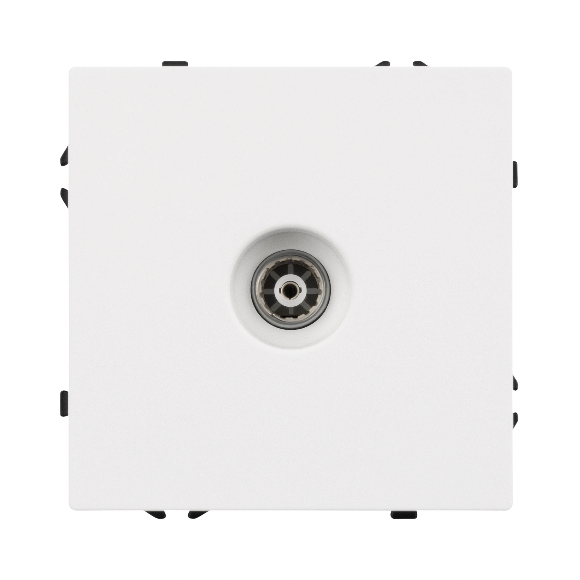 Строгие геометрические линии гармонично сочетаются с функциональностью продуманных механизмов, создавая идеальное решение для дизайн-проектов, где важны как эстетика, так и практичность. Механизм ТВ-розетки совместим с рамками серии NOBE, создает утонченный минималистичный вид. Скрытый тип монтажа позволяет гармонично встроить в интерьер любого современного дизайн-проекта. Видимая часть выполнена из высококачественного пластика цвета белый кварц и имеет Soft-Touch покрытие, что придает изделию приятные тактильные ощущения и стильный внешний вид. Механизм ТВ-розетки предназначена для подключения кабельного телевидения, путем подсоединения коаксиального кабеля к винтовому зажиму. Усиленные распорные лапки двойного захвата надежно фиксируют устройство в установочном подрозетнике круглого сечения диаметром 60мм. Суппорт окрашен в черный матовый цвет и выполнен из металла толщиной 1,5мм, что обеспечивает безопасность и уверенность в установке. На каждой стороне суппорта размещены фиксирующие элементы, позволяющие комбинировать механизмы в системы до 5шт как горизонтально, так и вертикально.
