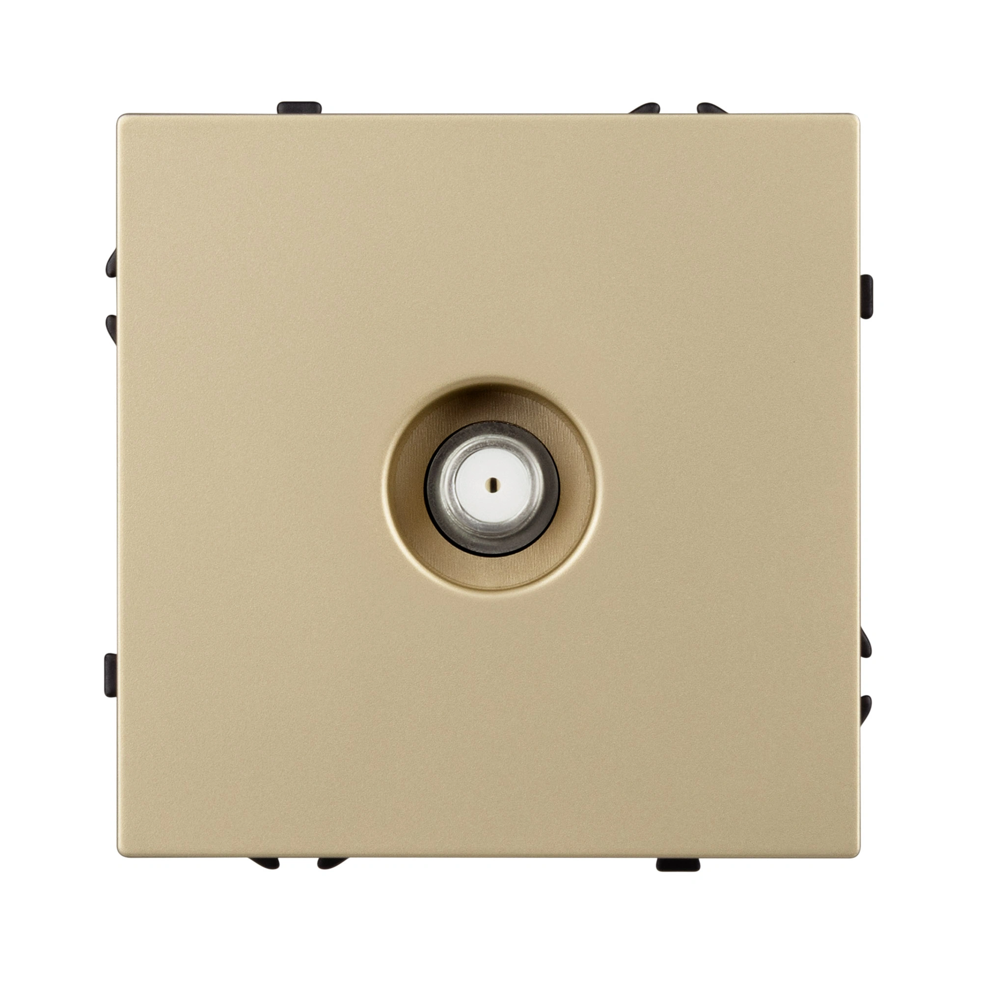 Строгие геометрические линии гармонично сочетаются с функциональностью продуманных механизмов, создавая идеальное решение для дизайн-проектов, где важны как эстетика, так и практичность. Механизм спутниковой розетки совместим с рамками серии NOBE, создает утонченный минималистичный вид. Скрытый тип монтажа позволяет гармонично встроить в интерьер любого современного дизайн-проекта. Видимая часть выполнена из высококачественного пластика цвета золотой песок и имеет Soft-Touch покрытие, что придает изделию приятные тактильные ощущения и стильный внешний вид. Механизм спутниковой розетки предназначена для подключения спутникового телевидения, путем подсоединения коаксиального кабеля к винтовому зажиму. Усиленные распорные лапки двойного захвата надежно фиксируют устройство в установочном подрозетнике круглого сечения диаметром 60мм. Суппорт окрашен в черный матовый цвет и выполнен из металла толщиной 1,5мм, что обеспечивает безопасность и уверенность в установке. На каждой стороне суппорта размещены фиксирующие элементы, позволяющие комбинировать механизмы в системы до 5шт как горизонтально, так и вертикально.