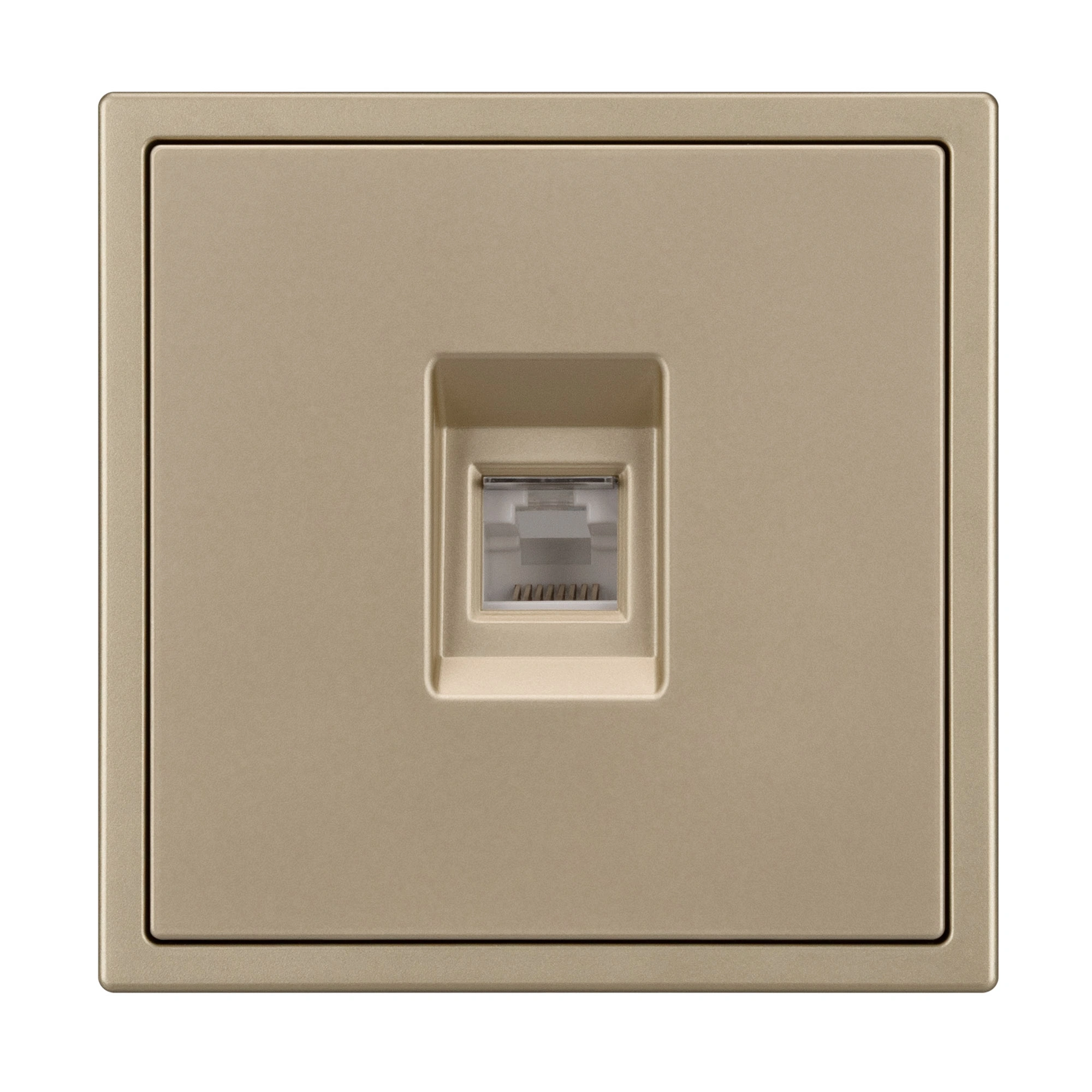 Строгие геометрические линии гармонично сочетаются с функциональностью продуманных механизмов, создавая идеальное решение для дизайн-проектов, где важны как эстетика, так и практичность. Механизм телефонной розетки совместим с рамками серии NOBE, создает утонченный минималистичный вид. Скрытый тип монтажа позволяет гармонично встроить в интерьер любого современного дизайн-проекта. Видимая часть механизма выполнена из высококачественного пластика цвета золотой песок имеет Soft-Touch покрытие, что придает изделию приятные тактильные ощущения и стильный внешний вид. Выходной порт RJ-11 (Female) формата 6P4C соответствует категории 3 (Cat.3). Самозакрывающаяся крышка защищает выходной порт от повреждения и загрязнения внешних контактов разъема. Контактная часть выполнена по технологии IPC (изоляционно–пробивающего контакта) с нанесением цветной маркировки схемы разводки на корпус, позволяя быстро и легко подсоединить механизм компьютерной розетки к большинству многожильных кабелей типа UTP (неэкранированные). А усиленные распорные лапки двойного захвата надежно фиксируют механизм в установочном подрозетнике круглого сечения диаметром 60мм. Суппорт окрашен в черный матовый цвет под основу механизма и выполнен из металла толщиной 1,5мм, что обеспечивает безопасность и уверенность в установке. На каждой стороне суппорта размещены фиксирующие элементы, позволяющие комбинировать механизмы в системы до 5шт как горизонтально, так и вертикально.
