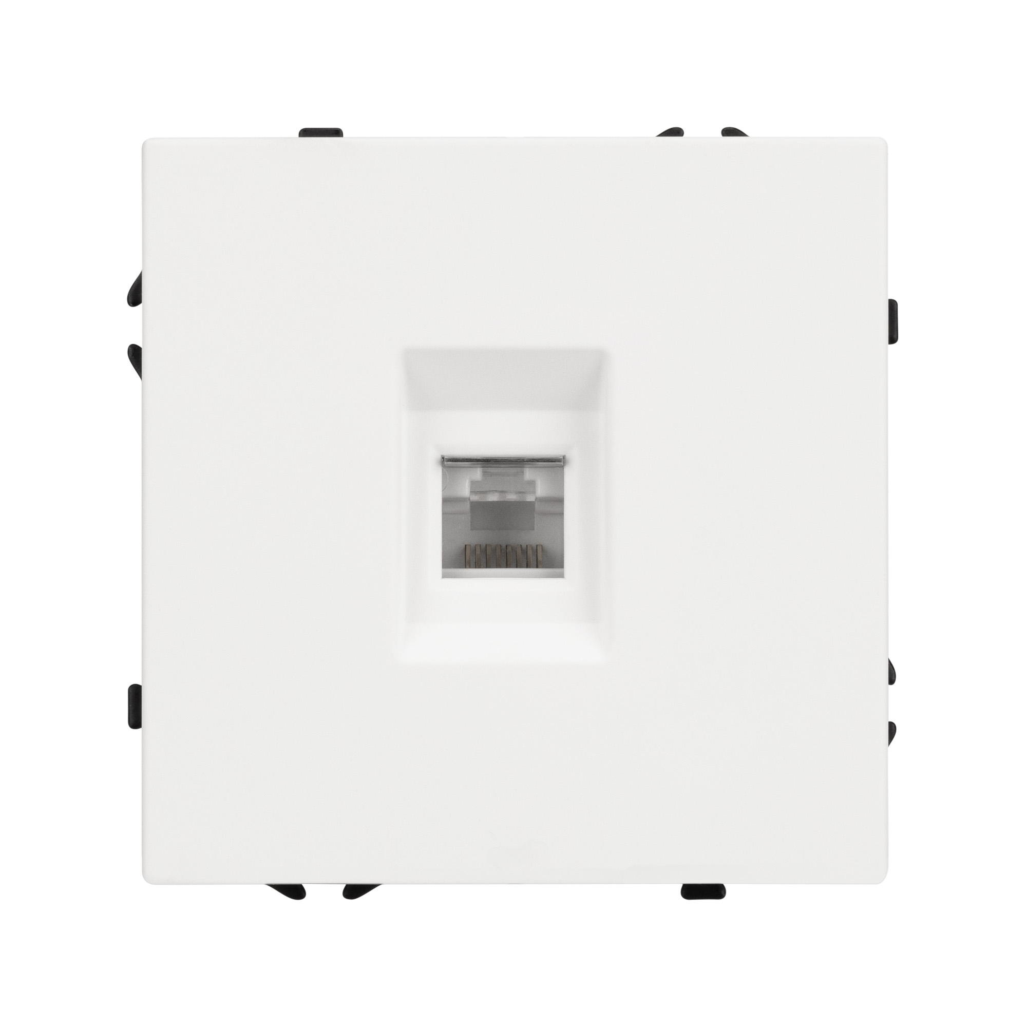 Строгие геометрические линии гармонично сочетаются с функциональностью продуманных механизмов, создавая идеальное решение для дизайн-проектов, где важны как эстетика, так и практичность. Механизм компьютерной розетки совместим с рамками серии NOBE, создает утонченный минималистичный вид. Скрытый тип монтажа позволяет гармонично встроить в интерьер любого современного дизайн-проекта. Видимая часть механизма выполнена из высококачественного пластика белого цвета и имеет Soft-Touch покрытие, что придает изделию приятные тактильные ощущения и стильный внешний вид. Выходной порт RJ-45 (Female) формата 8P8C соответствует категории 6 (Cat.6), что поддерживает высокоскоростные соединения до 10 Гбит/с на расстоянии до 55 метров. Самозакрывающаяся крышка защищает выходной порт от повреждения и загрязнения внешних контактов разъема. Контактная часть выполнена по технологии IPC (изоляционно–пробивающего контакта) с нанесением цветной маркировки схемы разводки на корпус, позволяя быстро и легко подсоединить механизм компьютерной розетки к большинству многожильных кабелей типа UTP (неэкранированные). А усиленные распорные лапки двойного захвата надежно фиксируют механизм в установочном подрозетнике круглого сечения диаметром 60мм. Суппорт окрашен в черный матовый цвет под основу механизма и выполнен из металла толщиной 1,5мм, что обеспечивает безопасность и уверенность в установке. На каждой стороне суппорта размещены фиксирующие элементы, позволяющие комбинировать механизмы в системы до 5шт как горизонтально, так и вертикально.