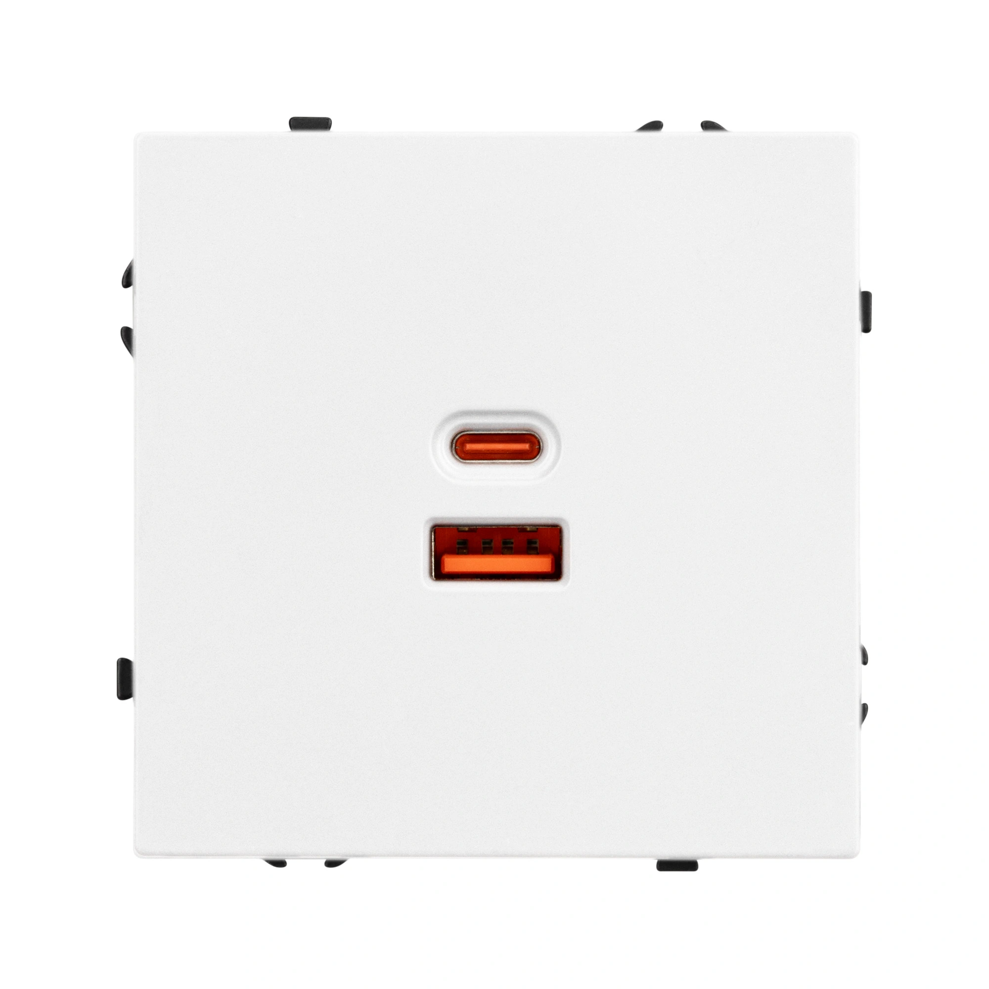 Строгие геометрические линии гармонично сочетаются с функциональностью продуманных механизмов, создавая идеальное решение для дизайн-проектов, где важны как эстетика, так и практичность. Механизм розетки с быстрой USB зарядкой, совместимый с рамками серии NOBE, создает утонченный минималистичный вид. Наличие USB Type A и Type C портов позволяет существенно сократить количество используемых розеточных постов под евровилку, сохраняя единую стилистику интерьера всего современного дизайн-проекта. Оба разъема поддерживают протокол быстрой зарядки Quick Charge QC 3.0, помимо этого для разъема Type C доступен протокол Power Delivery*. Выходные параметры для данных типов портов при этом составляют 30W и 65W соответственно. Видимая часть механизма выполнена из высококачественного пластика цвета белый кварц и имеет Soft-Touch покрытие, что придает изделию приятные тактильные ощущения и стильный внешний вид. Контактная часть присоединяется при помощи винтовых зажимов, позволяя надежно подсоединить механизм выключателя к питающим элементам. Суппорт окрашен в черный матовый цвет под основу механизма и выполнен из металла толщиной 1,5мм, что обеспечивает безопасность и уверенность в установке. На каждой стороне суппорта размещены фиксирующие элементы, позволяющие комбинировать механизмы в системы до 5шт как горизонтально, так и вертикально. *Для активации функции быстрой зарядки необходимо использовать специализированный зарядный кабель, который предназначен для работы с зарядными устройствами повышенной мощности.