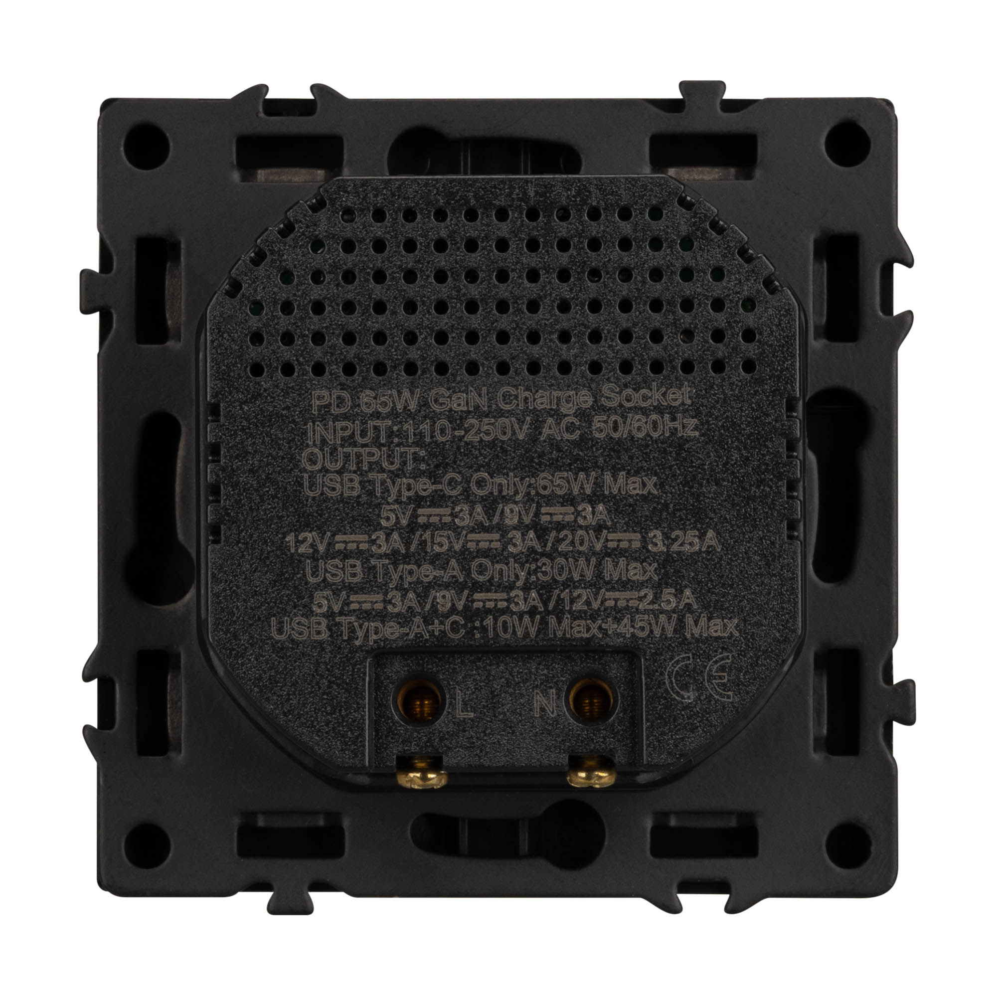 Характеристики - Механизм розетки с быстрой USB зарядкой SCT-NOBE-MUAC-SFPL-FC-BK (65W, QC3) (Arlight, -)