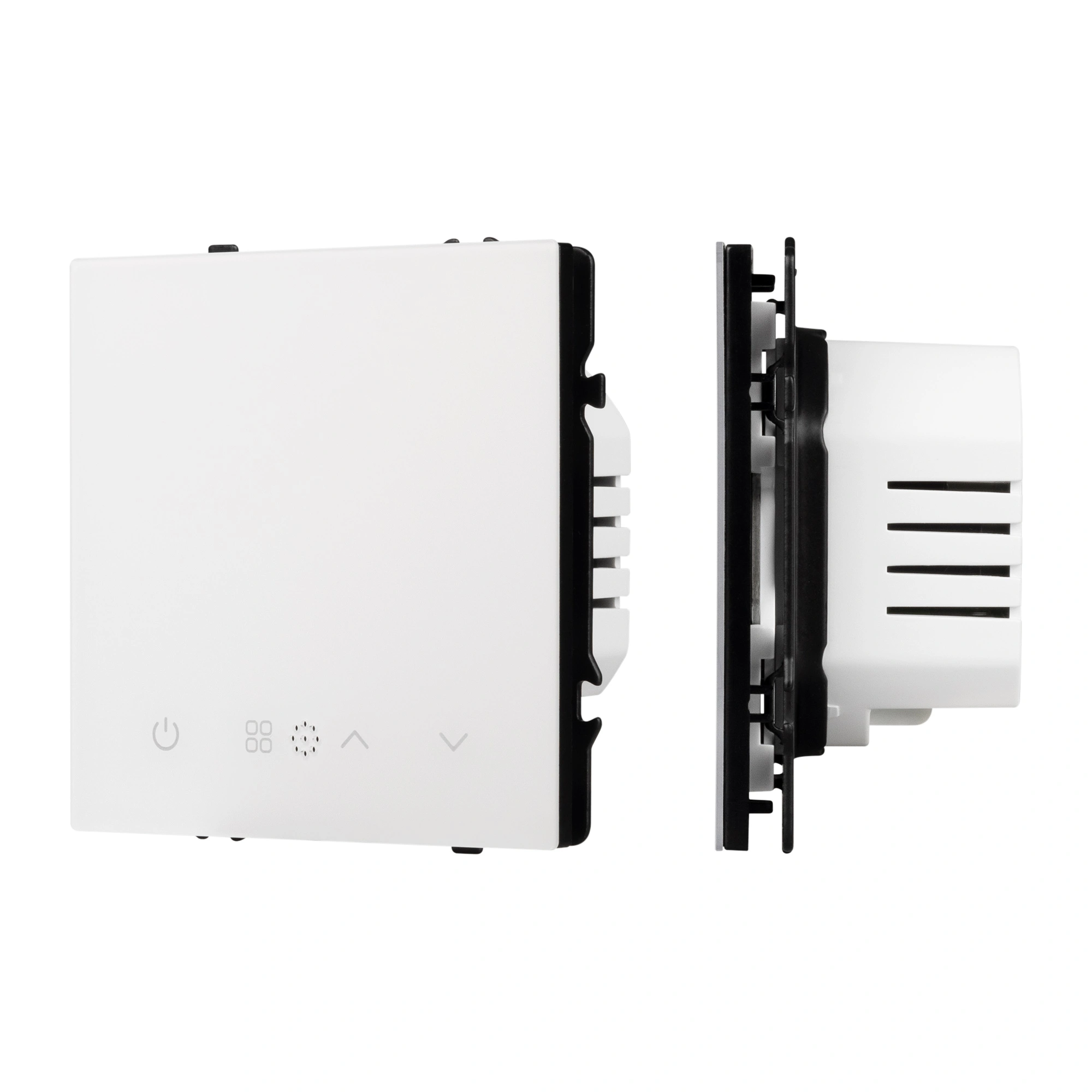 Строгие геометрические линии гармонично сочетаются с функциональностью продуманных механизмов, создавая идеальное решение для дизайн-проектов, где важны как эстетика, так и практичность. Терморегулятор совместим с рамками серии NOBE, создает утонченный минималистичный вид. Скрытый тип монтажа позволяет гармонично встроить в интерьер любого современного дизайн-проекта. Видимая часть механизма выполнена из глянцевого поликарбоната цвета белый кварц, что придает изделию приятные тактильные ощущения и стильный внешний вид. Настройка работы электрического теплого пола осуществляется за счет выбора необходимых значений не посредственно как на самом устройстве, так и при подключении по беспроводной сети Zigbee в приложениях SmartLife и Умный Дом (Яндекс). Суппорт окрашен в черный матовый цвет под основу механизма и выполнен из металла толщиной 1,5мм, что обеспечивает безопасность и уверенность в установке. На каждой стороне суппорта размещены фиксирующие элементы, позволяющие комбинировать механизмы в системы до 5шт как горизонтально, так и вертикально.