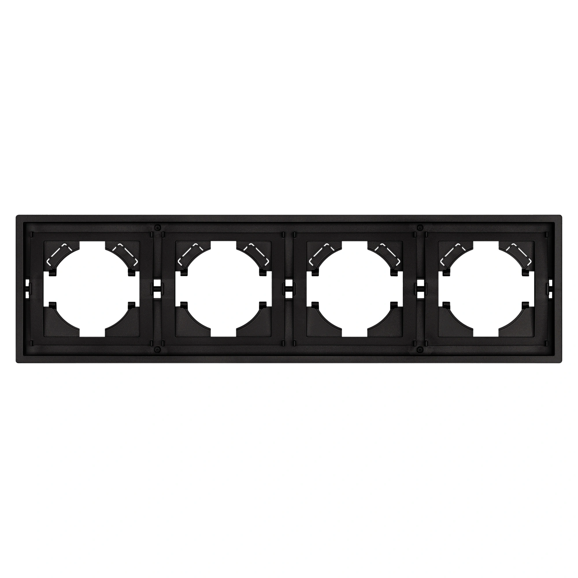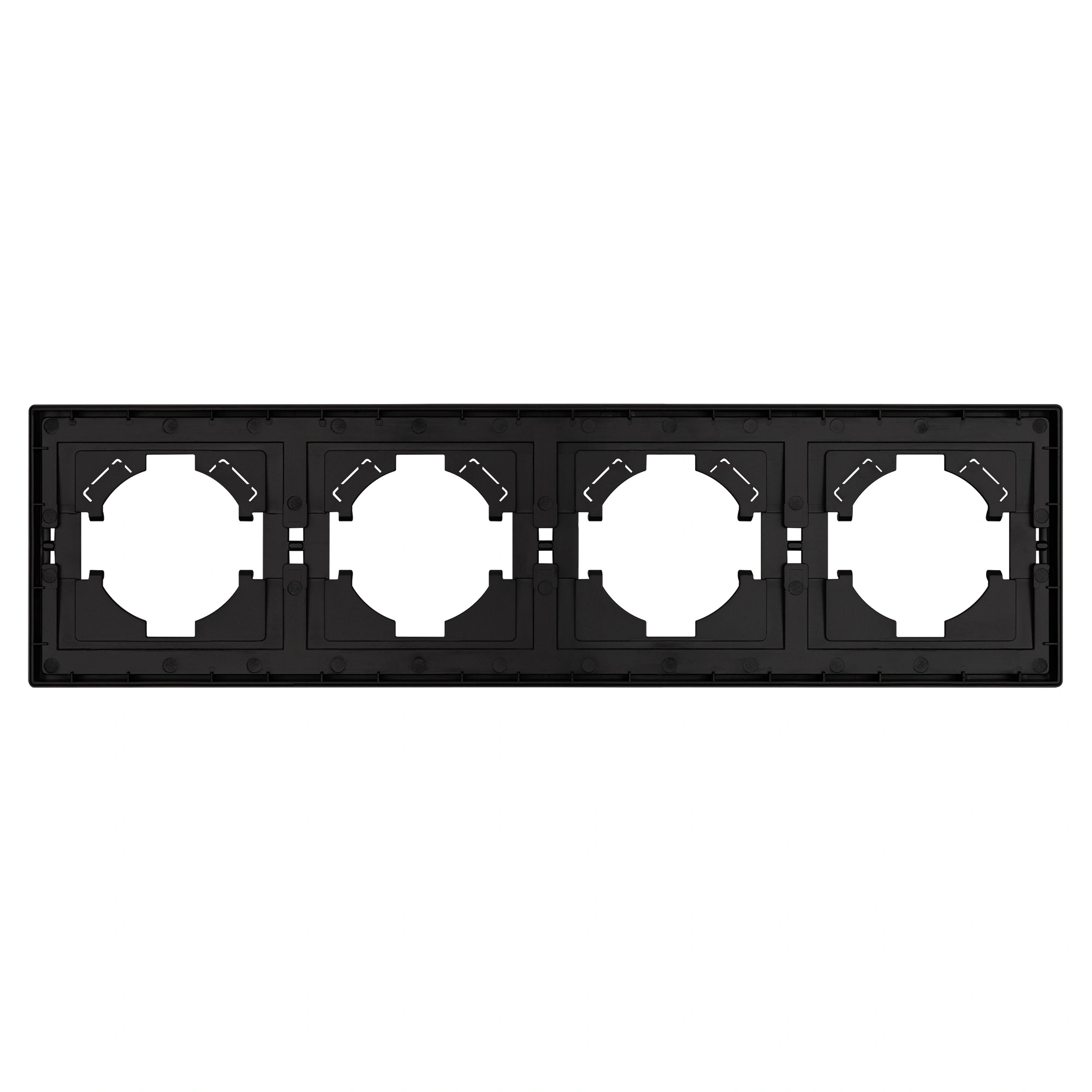 Рамка пластиковая на 4 поста, под встраиваемый механизм. Цвет - черный, с Soft-Touch покрытием. Среднего уровня герметичности IP20. Ориентация монтажа горизонтальная.