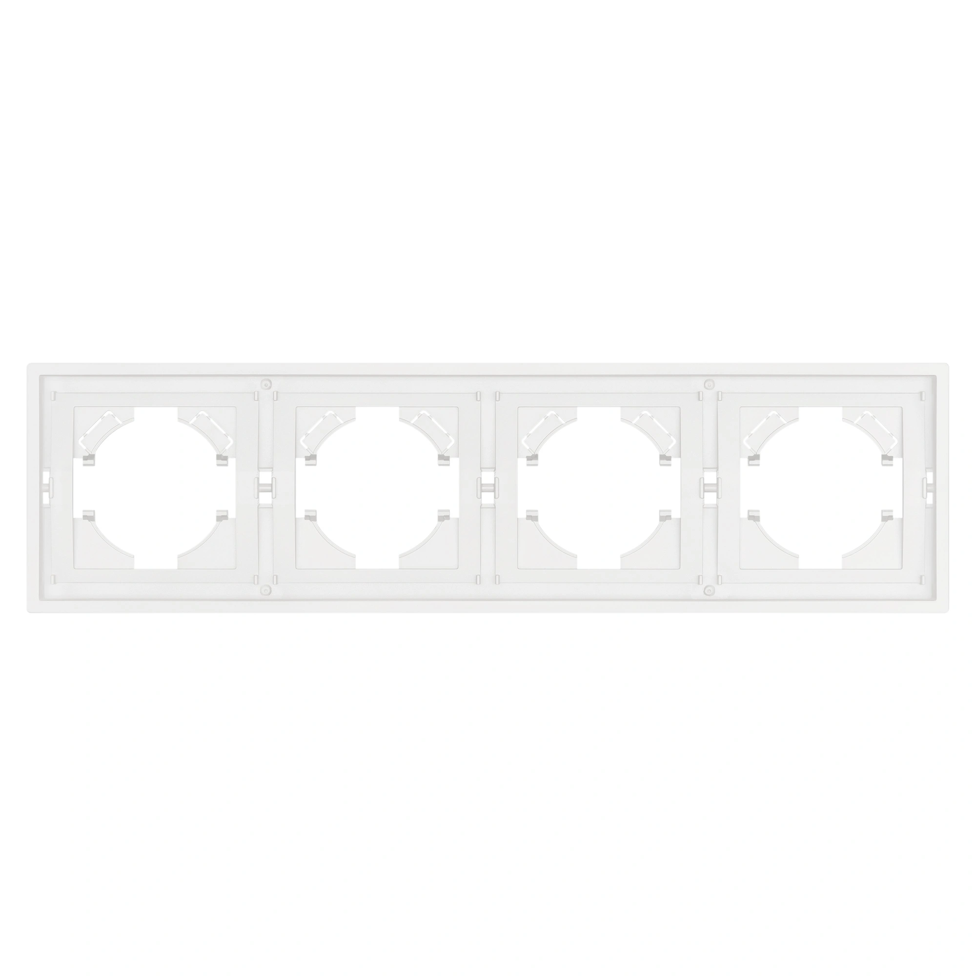 Рамка пластиковая на 4 поста, под встраиваемый механизм. Цвет - белый, с Soft-Touch покрытием. Среднего уровня герметичности IP20. Ориентация монтажа горизонтальная.